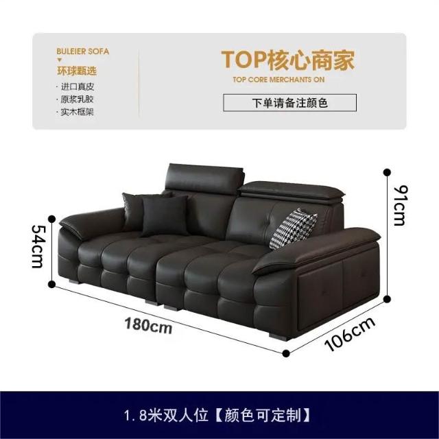 幕辭精品 意式極簡勞倫斯真皮沙發客廳高檔直排可調節大黑牛頭層牛皮沙發 4ed