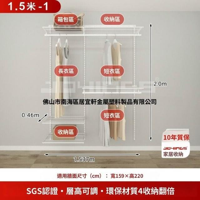 幕辭家居 步入式開放衣帽間金屬簡易衣櫃壁掛式組裝衣櫥 738