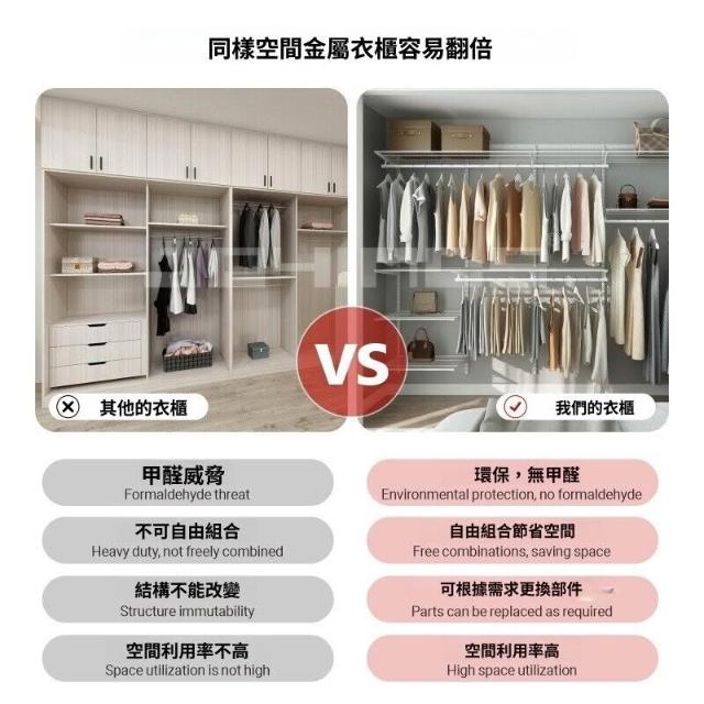 幕辭家居 步入式開放衣帽間金屬簡易衣櫃壁掛式組裝衣櫥 738