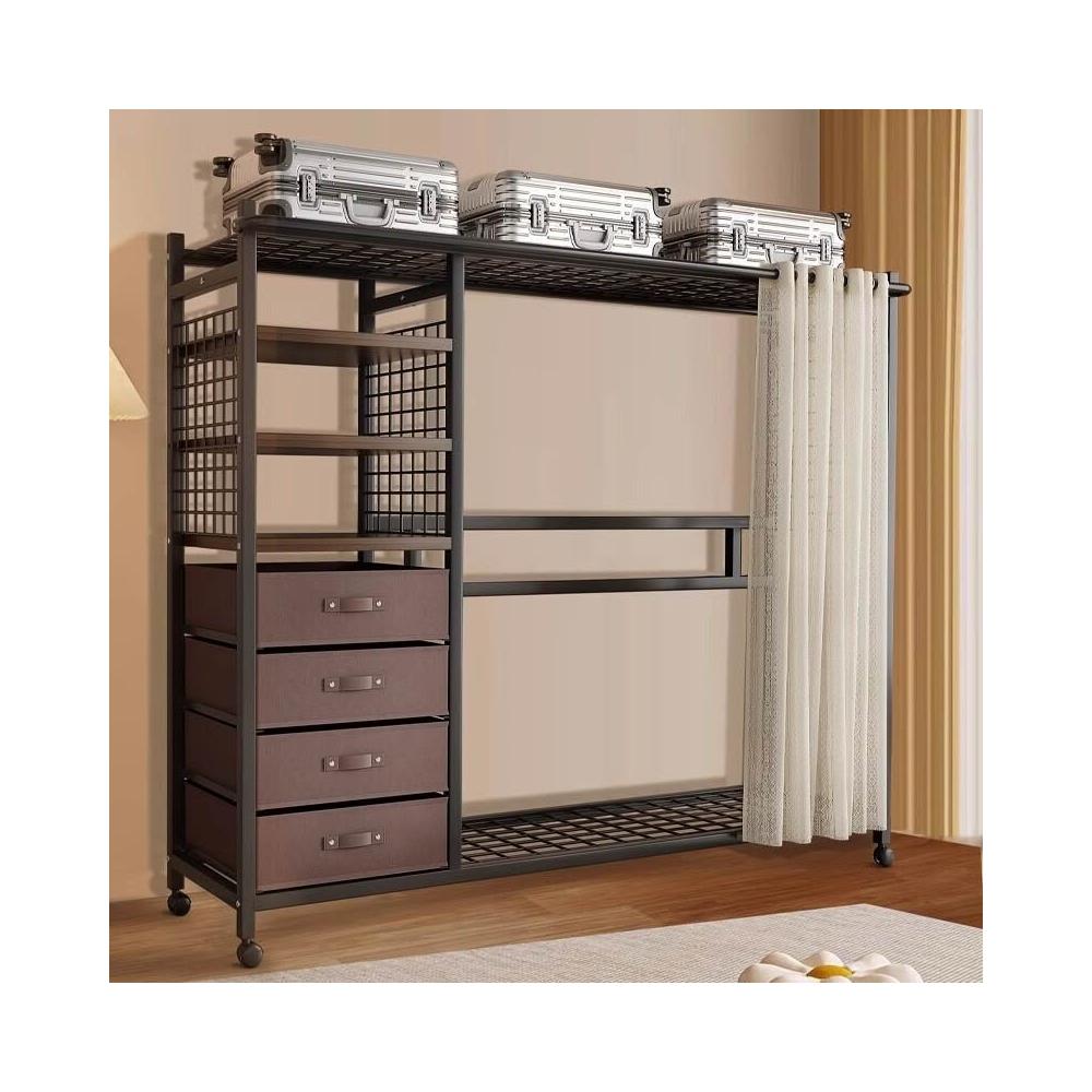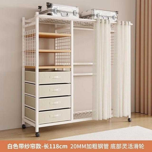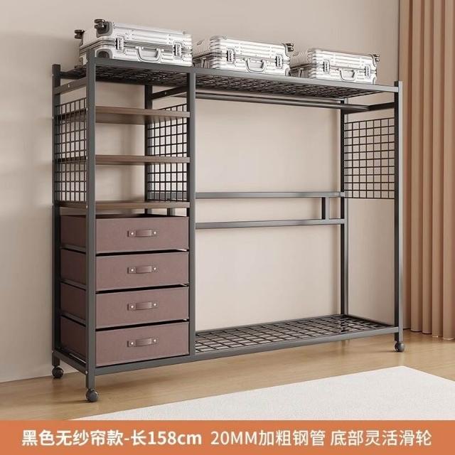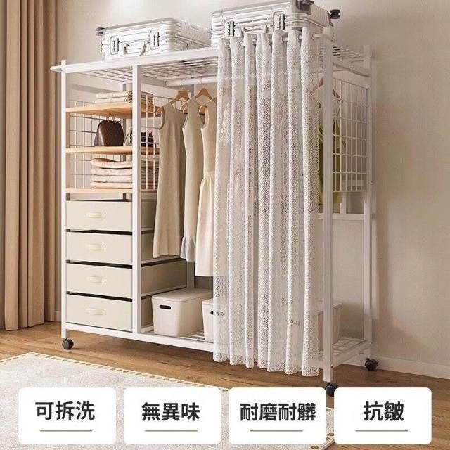 幕辭家居 簡易衣櫃鋼製布衣櫃臥室分層收納家具防塵衣櫥出租房開放式衣帽架 0f8