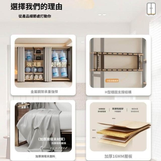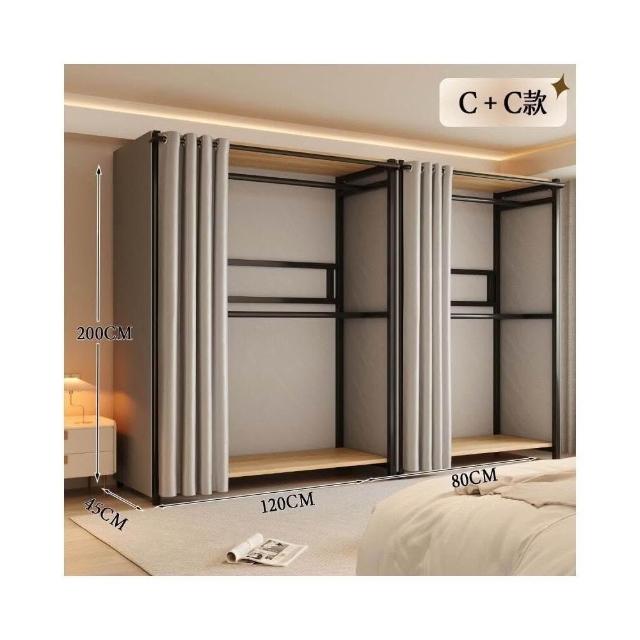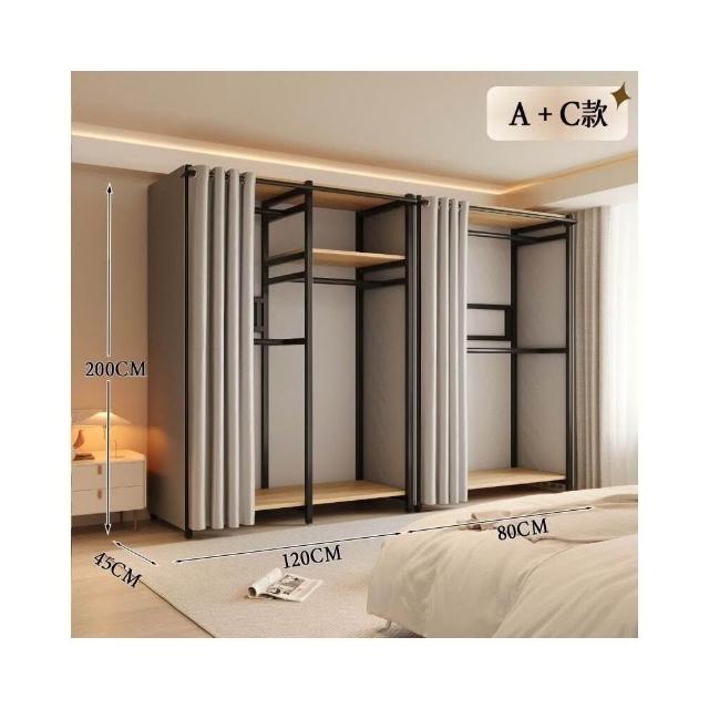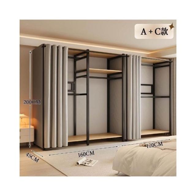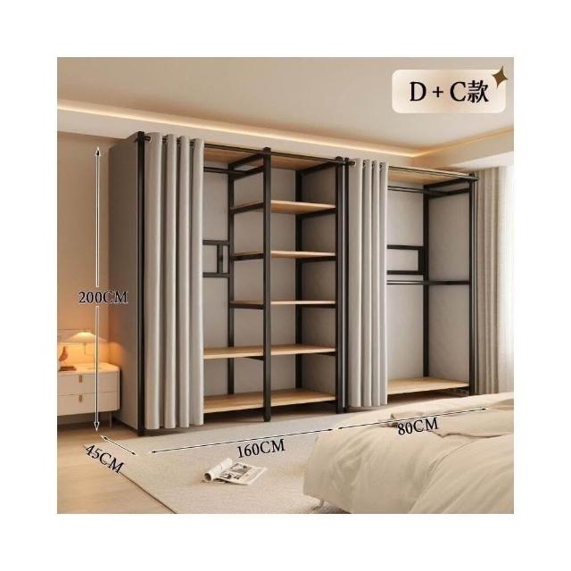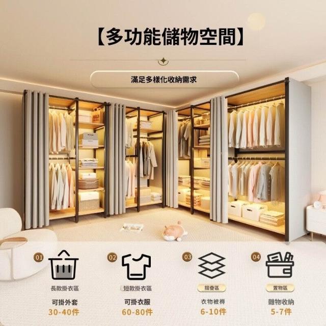 幕辭家居 開放式衣櫃步入式一體組合 臥室家用L型衣帽間 簡易組裝金屬衣櫥 加厚加粗全鋼架 多款可選 全包帶簾防塵 f88