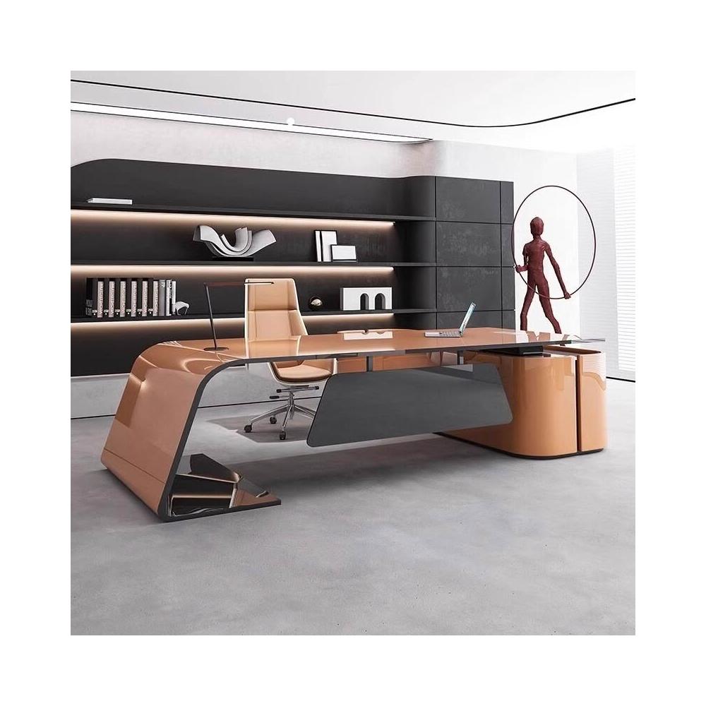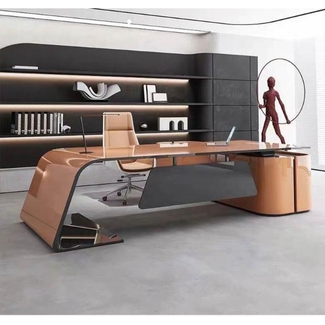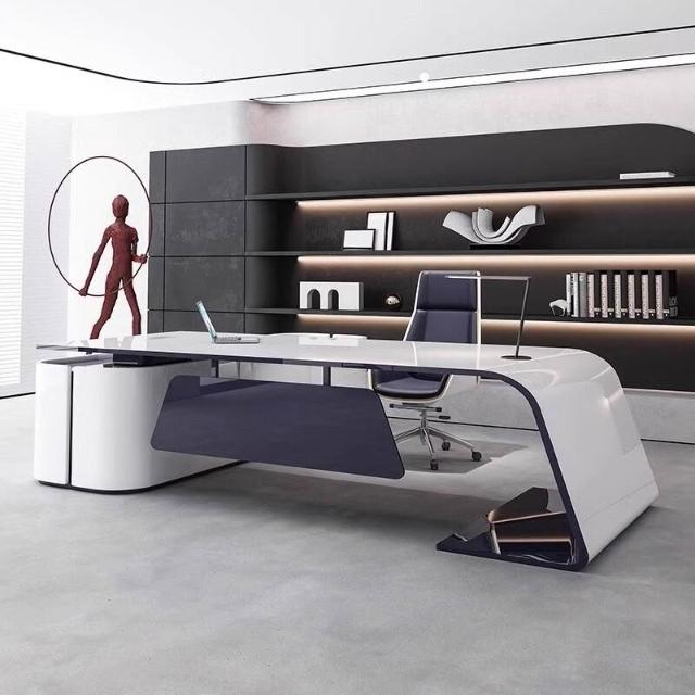 幕辭家居 高端烤漆老板辦公室輕奢辦公桌總裁大班臺簡約現代總經理桌子組合 ea4