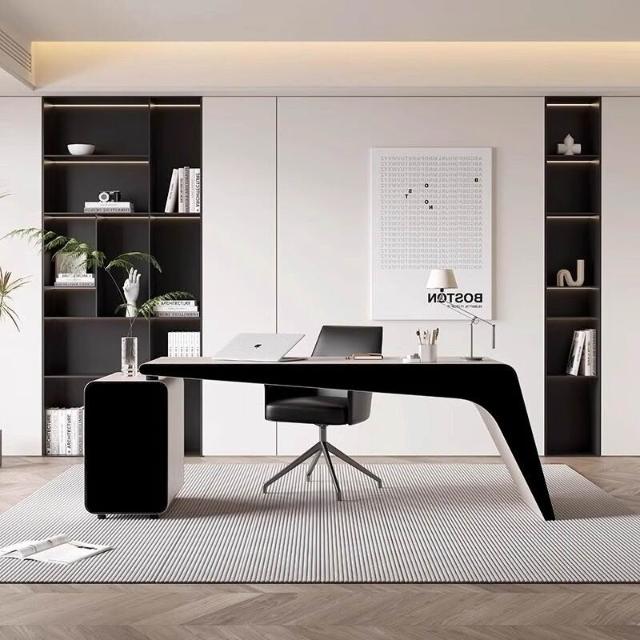 幕辭家居 烤漆老板辦公桌簡約現代書房單人書桌總裁桌輕奢高級感醫美咨詢桌 d64