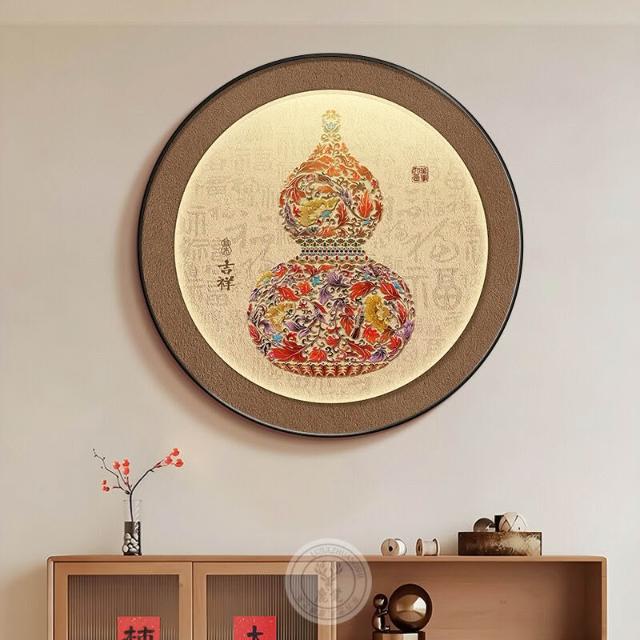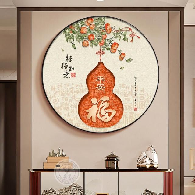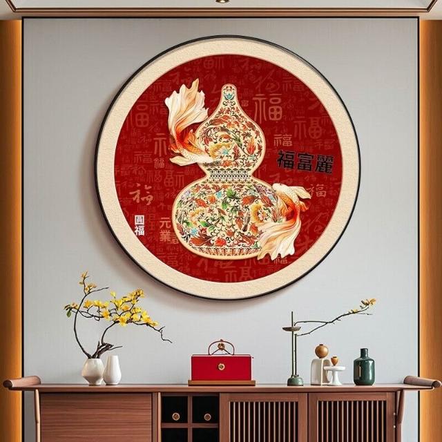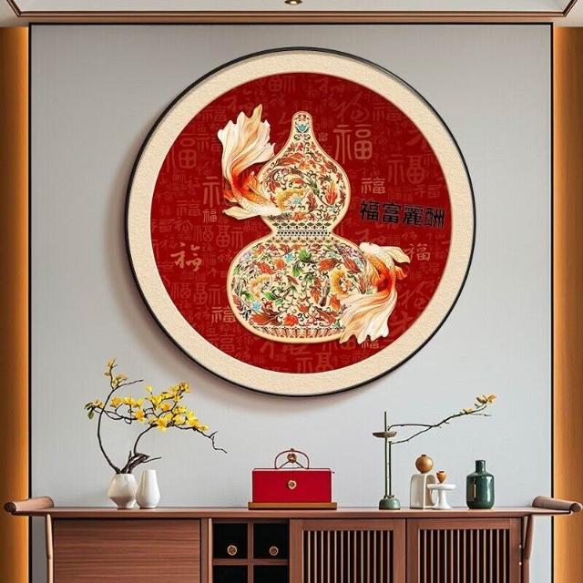 幕辭家居 福祿葫蘆玄關裝飾畫新中式入戶門墻掛畫圓形過道盡頭紅色錦鯉壁畫 14c