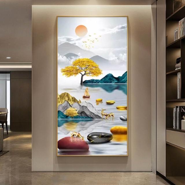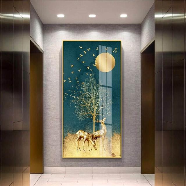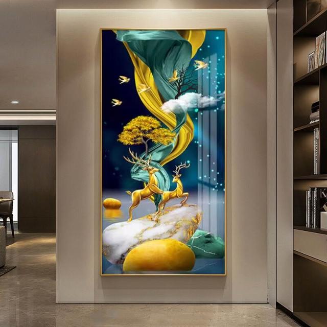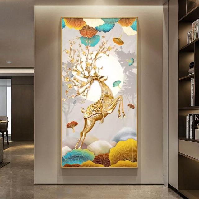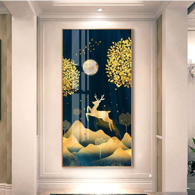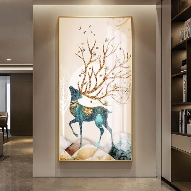 幕辭家居 玄關入戶客廳裝飾畫福祿走廊盡頭掛畫北歐麋鹿豎版沙發背景墻壁畫 5ca