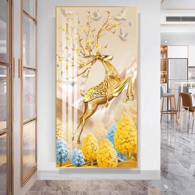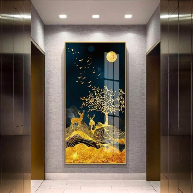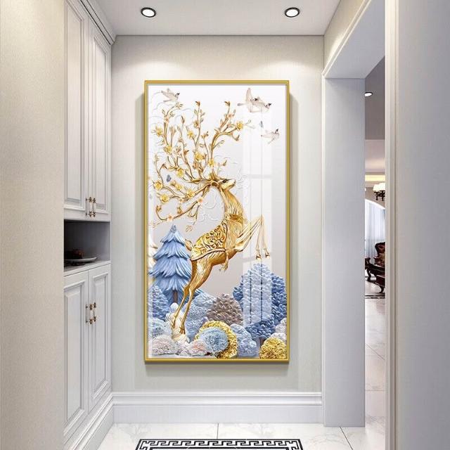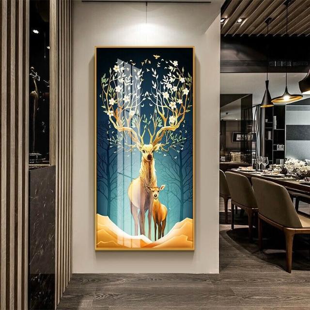 幕辭家居 玄關入戶客廳裝飾畫福祿走廊盡頭掛畫北歐麋鹿豎版沙發背景墻壁畫 5ca