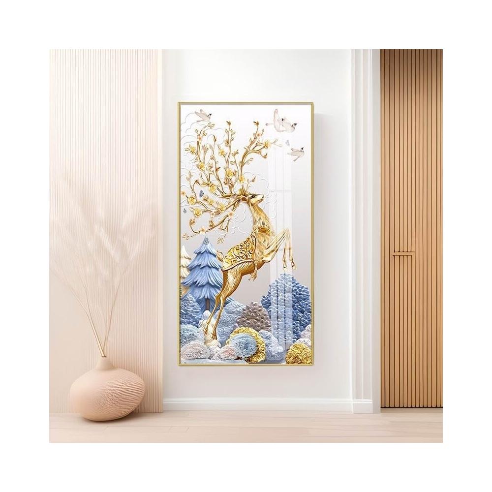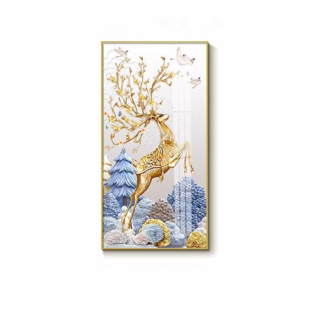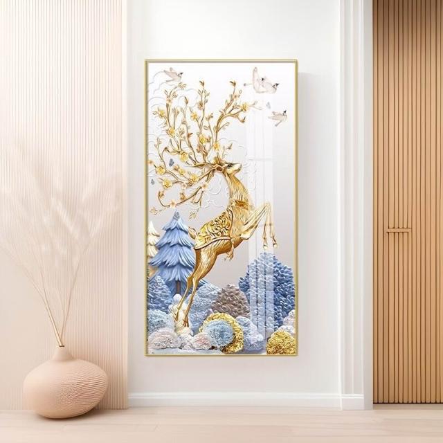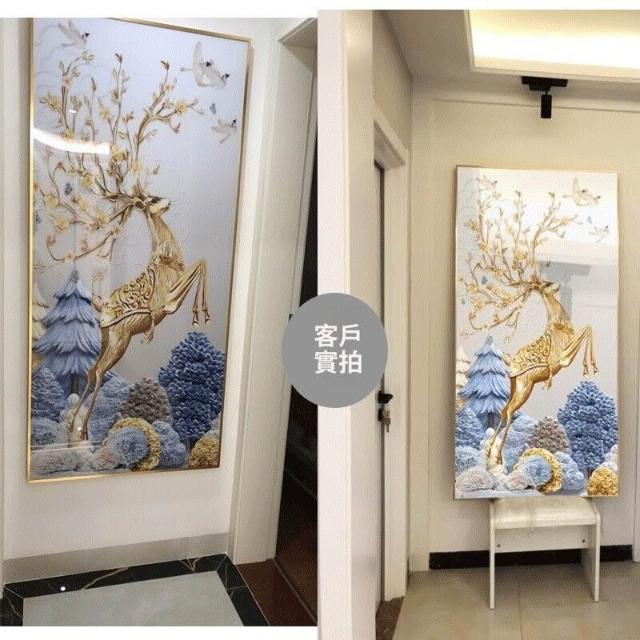 幕辭家居 玄關入戶客廳裝飾畫福祿走廊盡頭掛畫北歐麋鹿豎版沙發背景墻壁畫 5ca