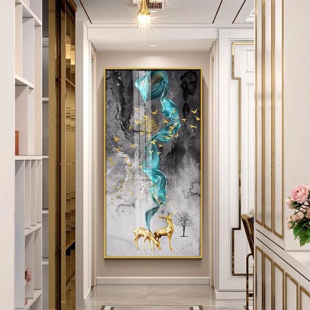 幕辭家居 玄關入戶客廳裝飾畫福祿走廊盡頭掛畫北歐麋鹿豎版沙發背景墻壁畫 5ca