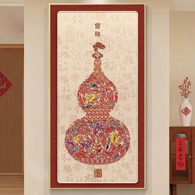 幕辭家居 百福圖玄關畫福字裝飾畫字畫紅色葫蘆新年喜慶掛畫辦公室墻壁畫 c59