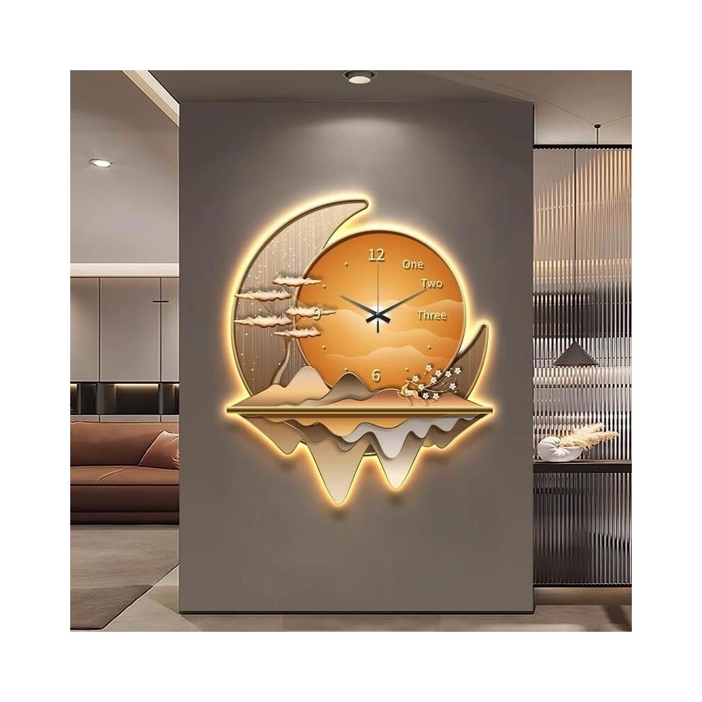 幕辭家居 輕奢風餐廳裝飾畫創意鐘表壁燈2025年新款客廳時鐘靜音背景墻掛鐘 092
