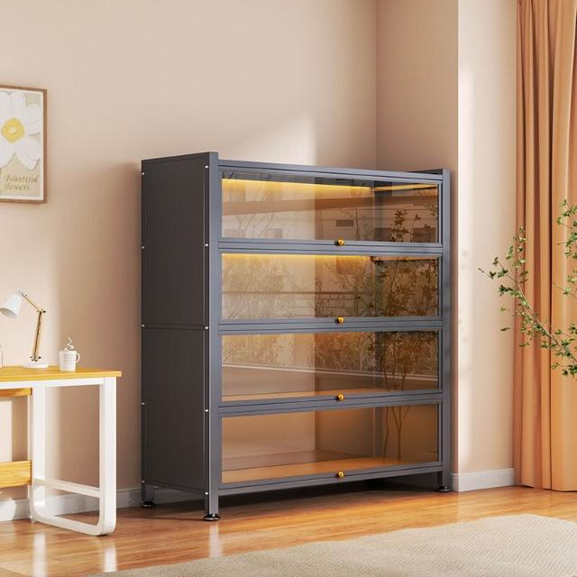 幕辭家居 家用書架帶玻璃門書櫃手辦櫃展示儲物一體收納櫃客廳臥室鐵皮痛櫃 3a2