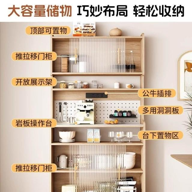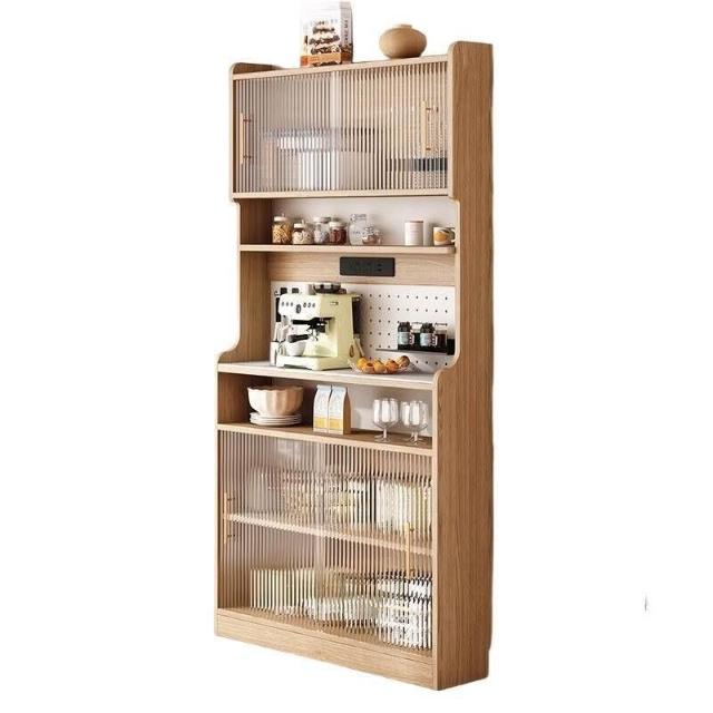 幕辭家居 超薄窄款實木原木餐邊櫃靠墻一體家用現代簡約廚房客廳置物架酒櫃 f05