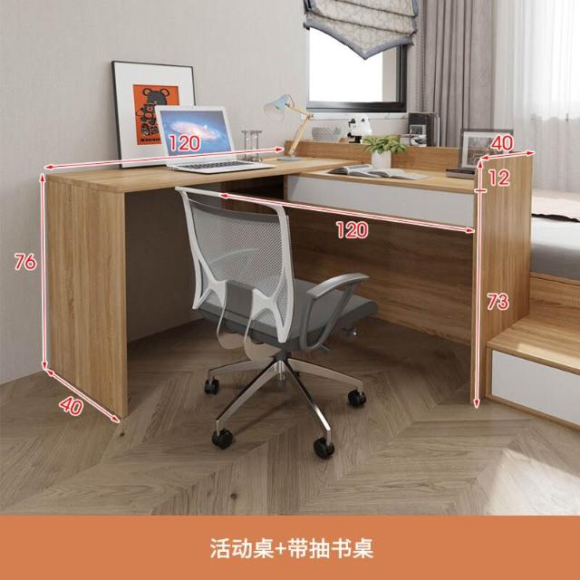 幕辭家居 小戶型高箱榻榻米帶書桌床衣櫃一體床組合板式小房間多功能單人床 1cb