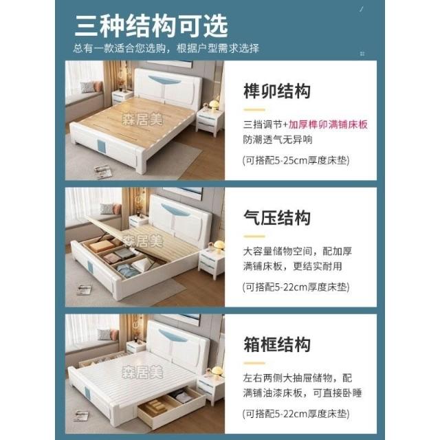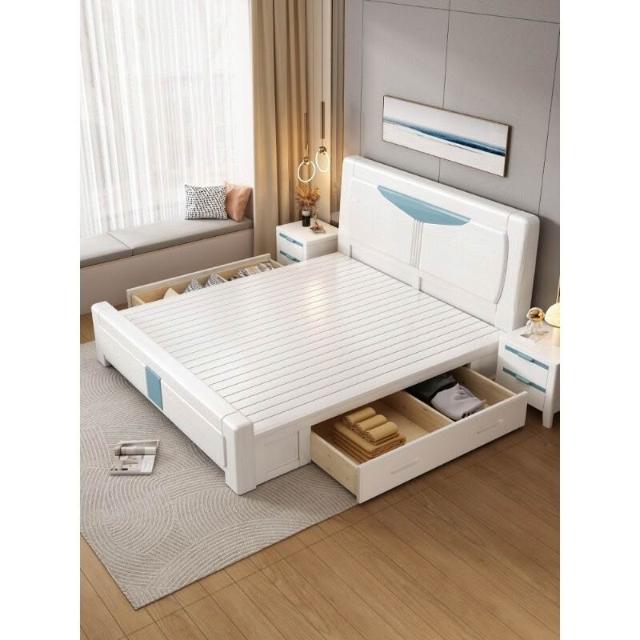 幕辭家居 全實木床白色榫卯結構1.8米主臥雙人大床現代簡約橡木儲物單人床 ecc