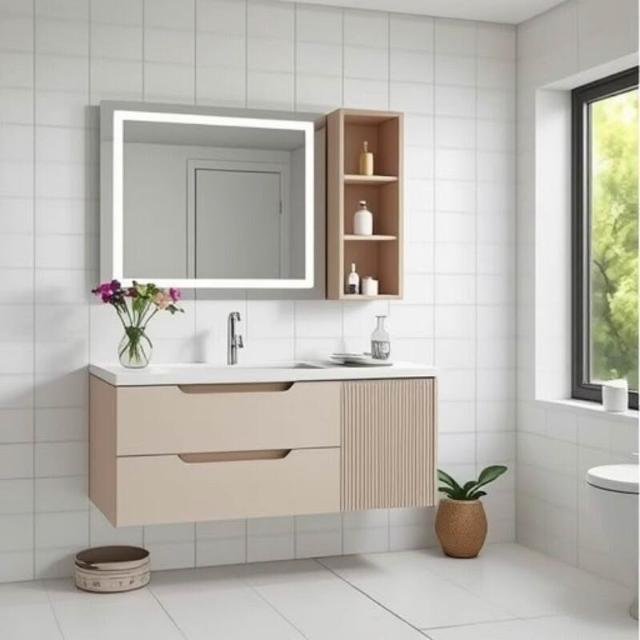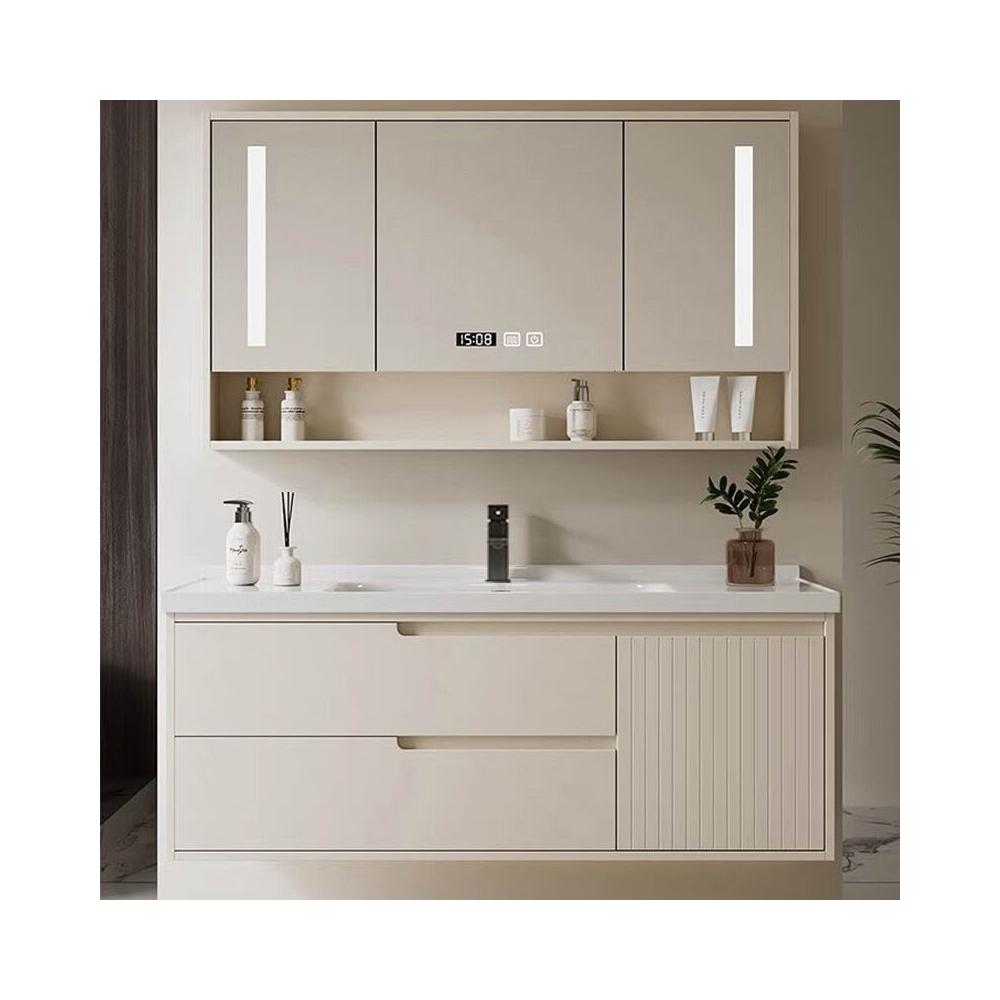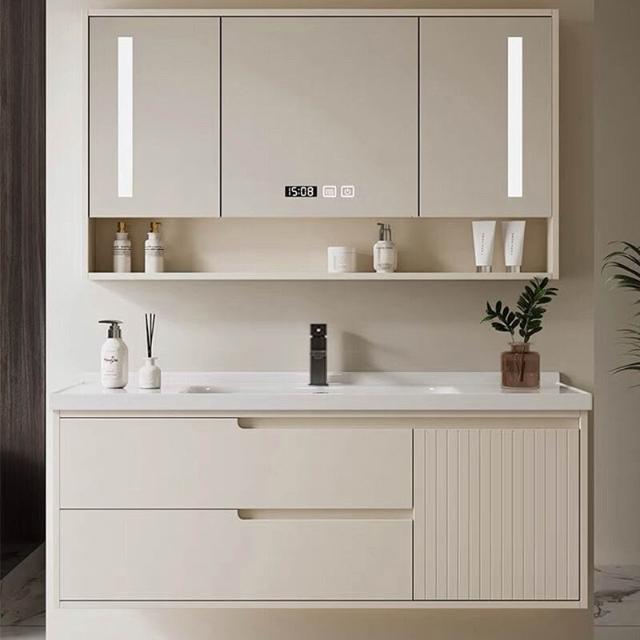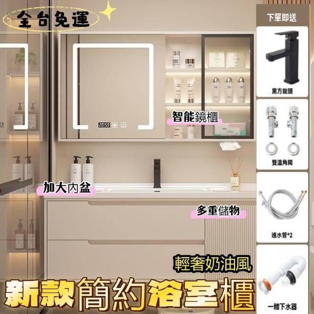 幕辭家居 奶油風實木家用浴室櫃陶瓷一體盆衛生間洗臉盆智能鏡櫃組合洗漱臺 5fd