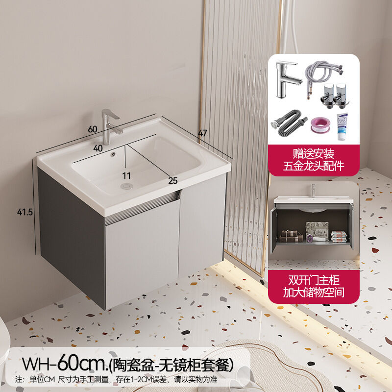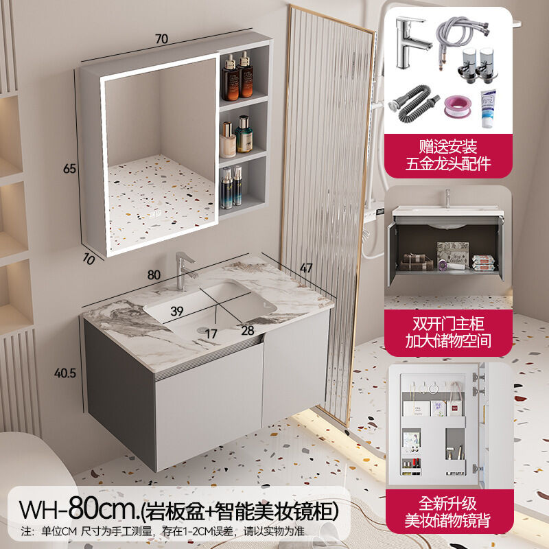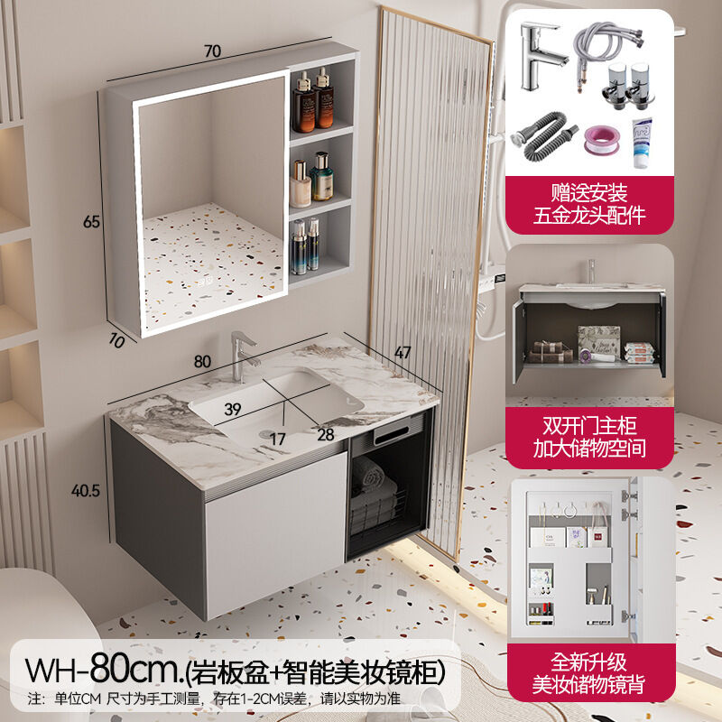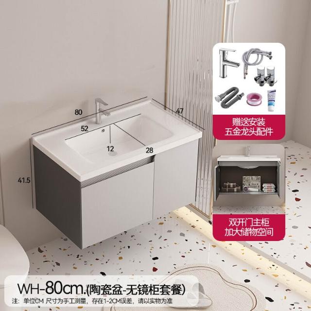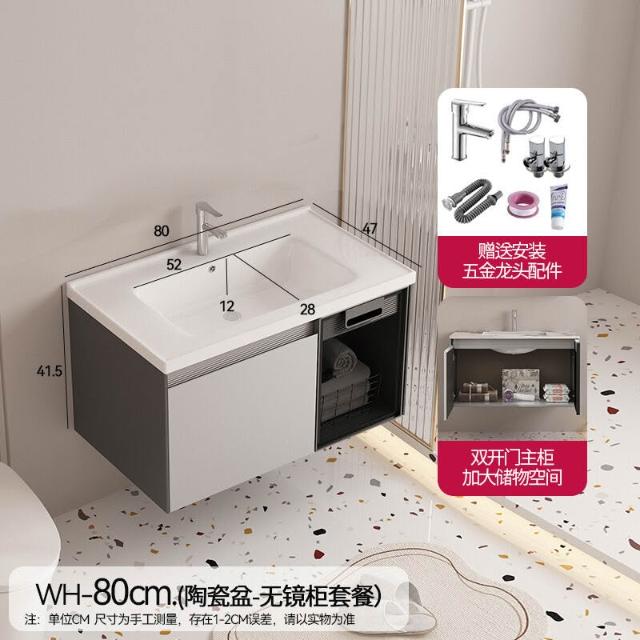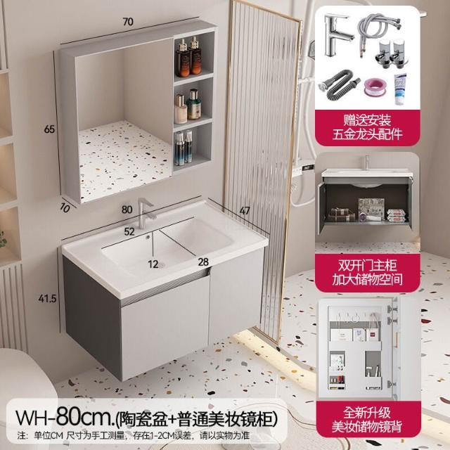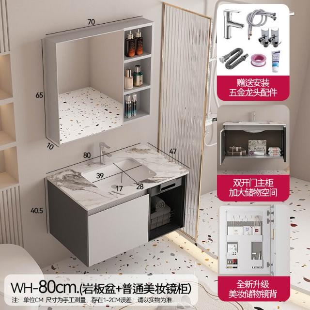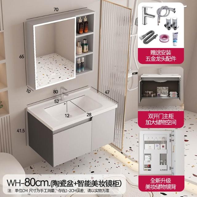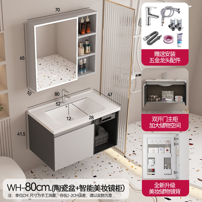 幕辭家居 不銹鋼浴室櫃組合陶瓷一體洗手盆家用衛生間洗臉盆櫃洗手間洗漱臺 66e