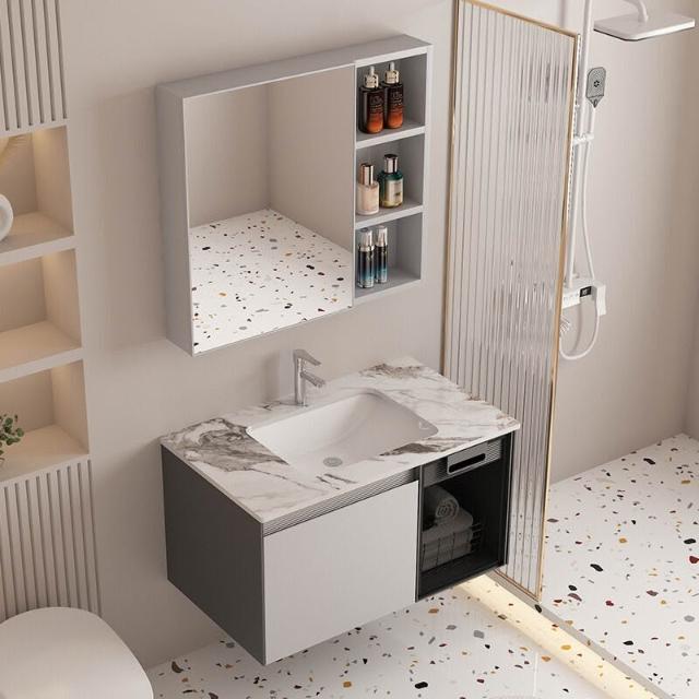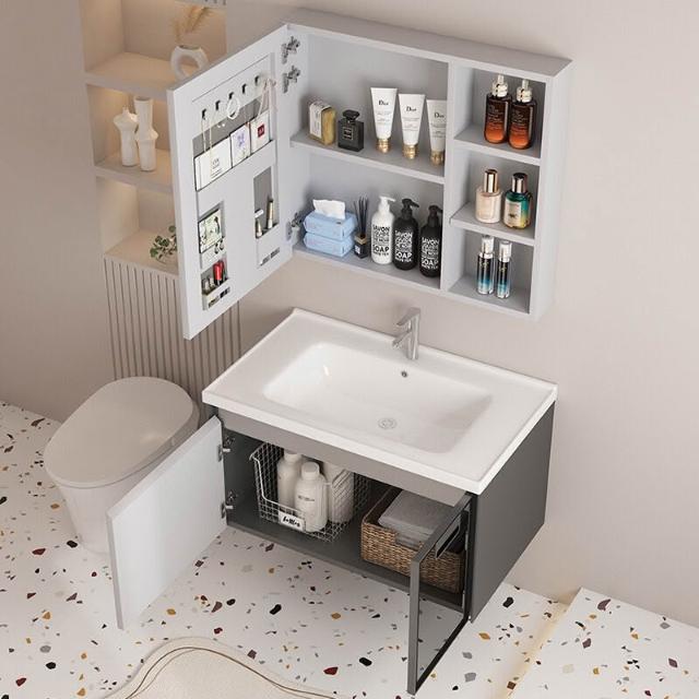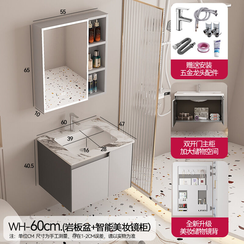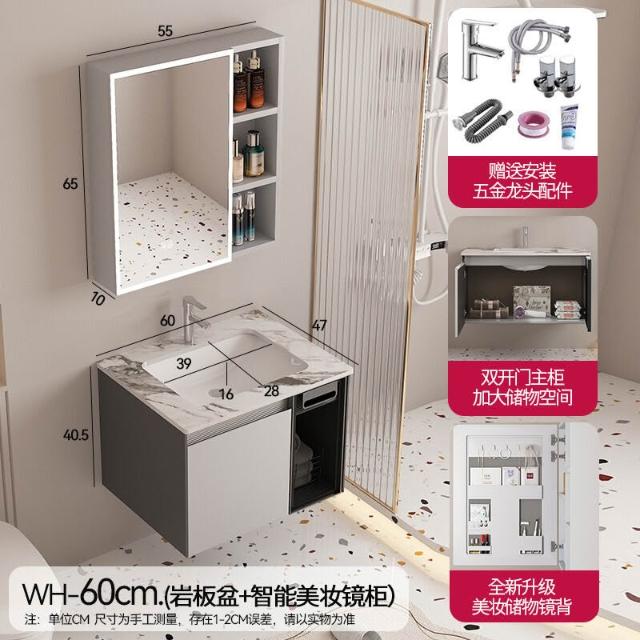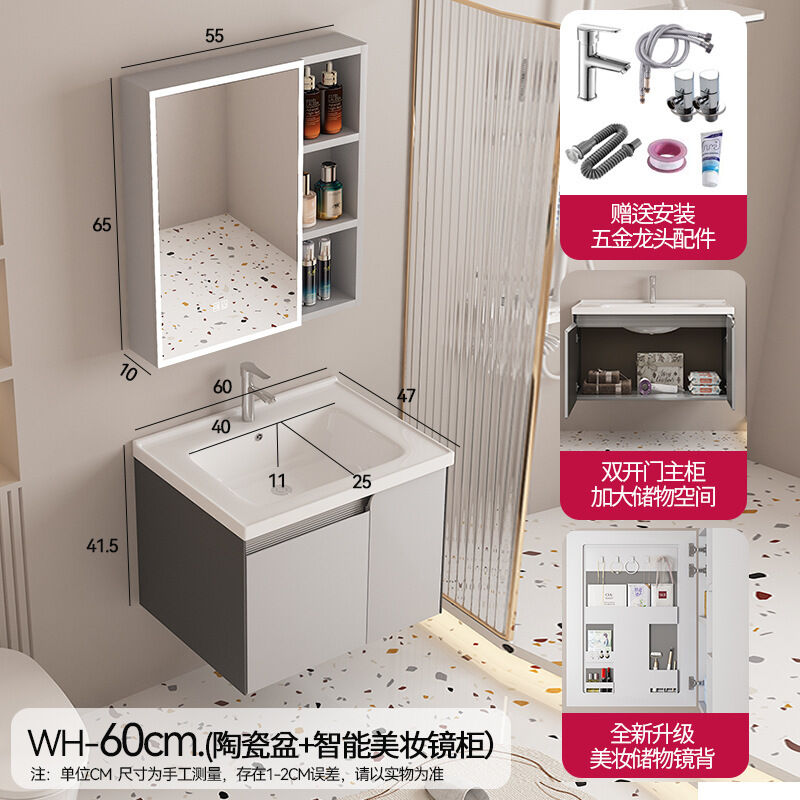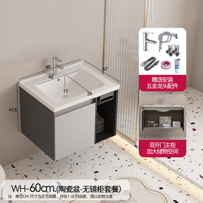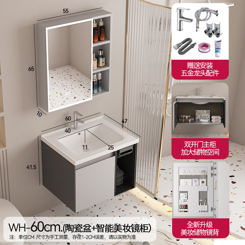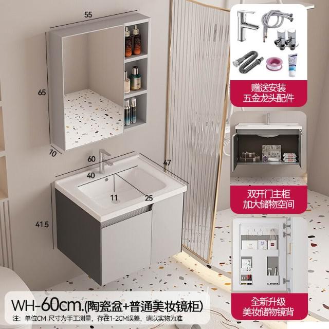 幕辭家居 不銹鋼浴室櫃組合陶瓷一體洗手盆家用衛生間洗臉盆櫃洗手間洗漱臺 66e