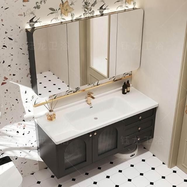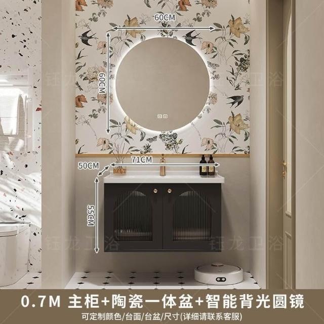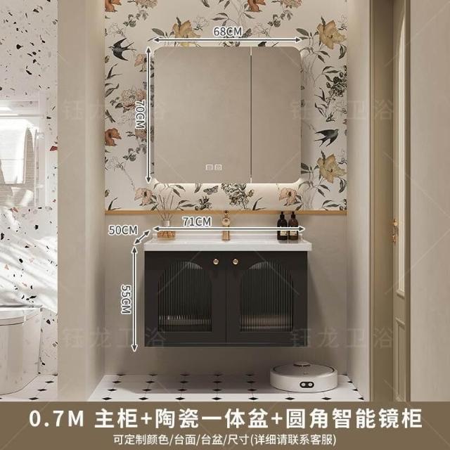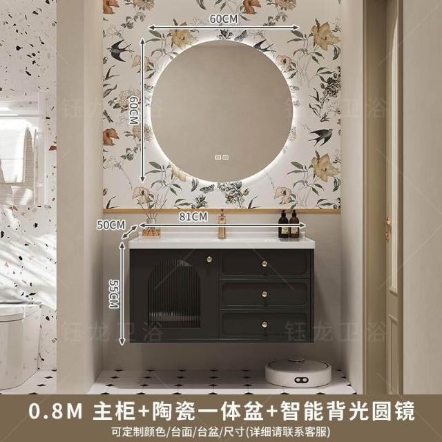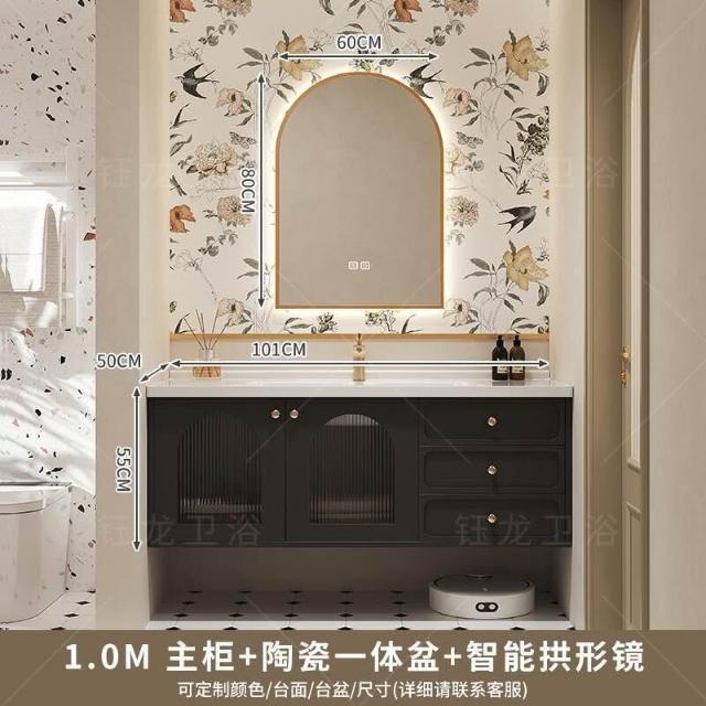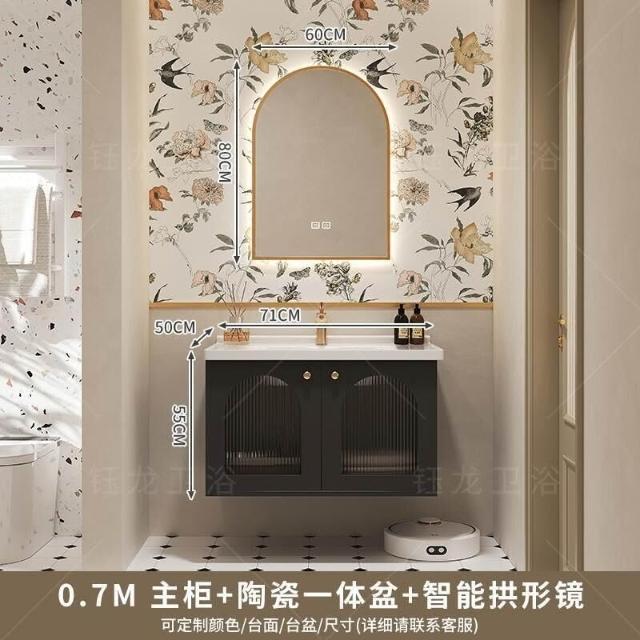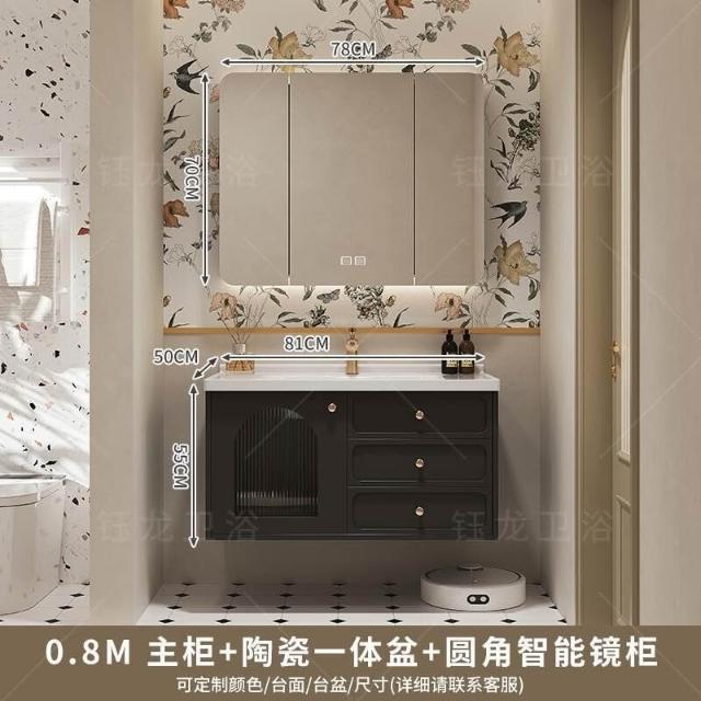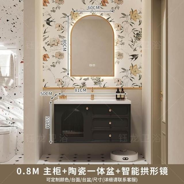 幕辭家居 法式簡約浴室櫃組合陶瓷一體盆衛生間全鏡櫃洗手面盆洗臉盆櫃組合 788
