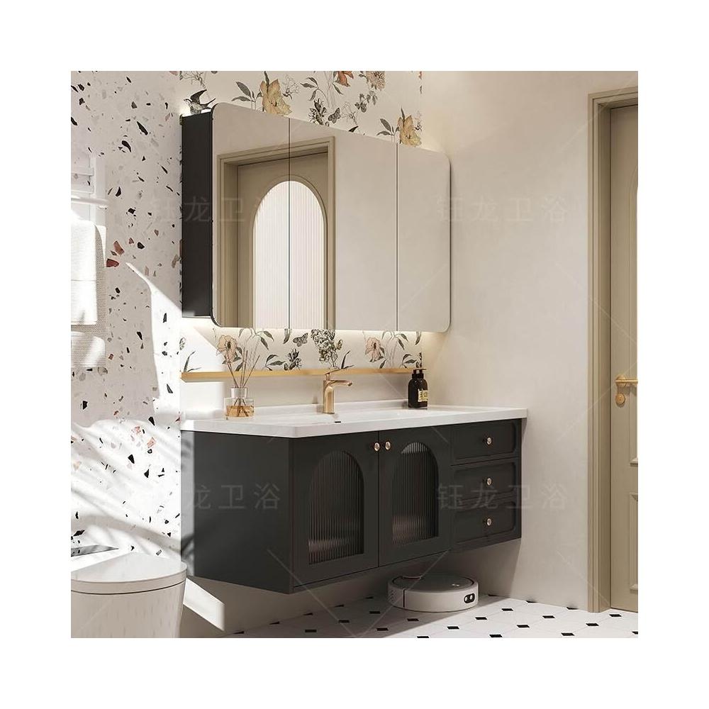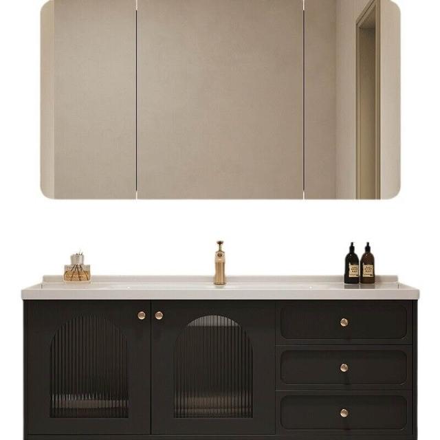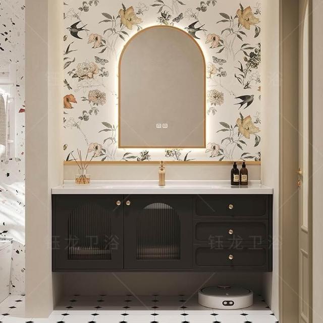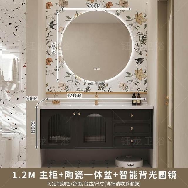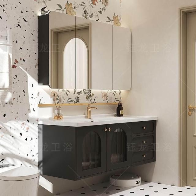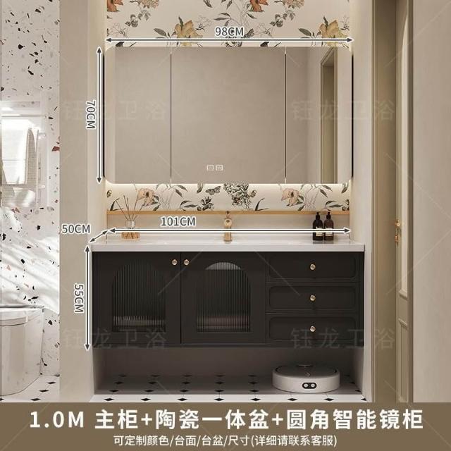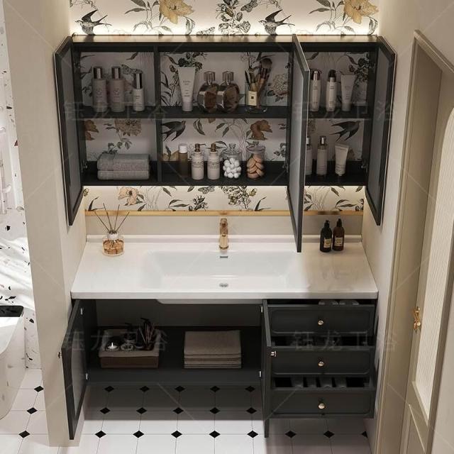 幕辭家居 法式簡約浴室櫃組合陶瓷一體盆衛生間全鏡櫃洗手面盆洗臉盆櫃組合 788