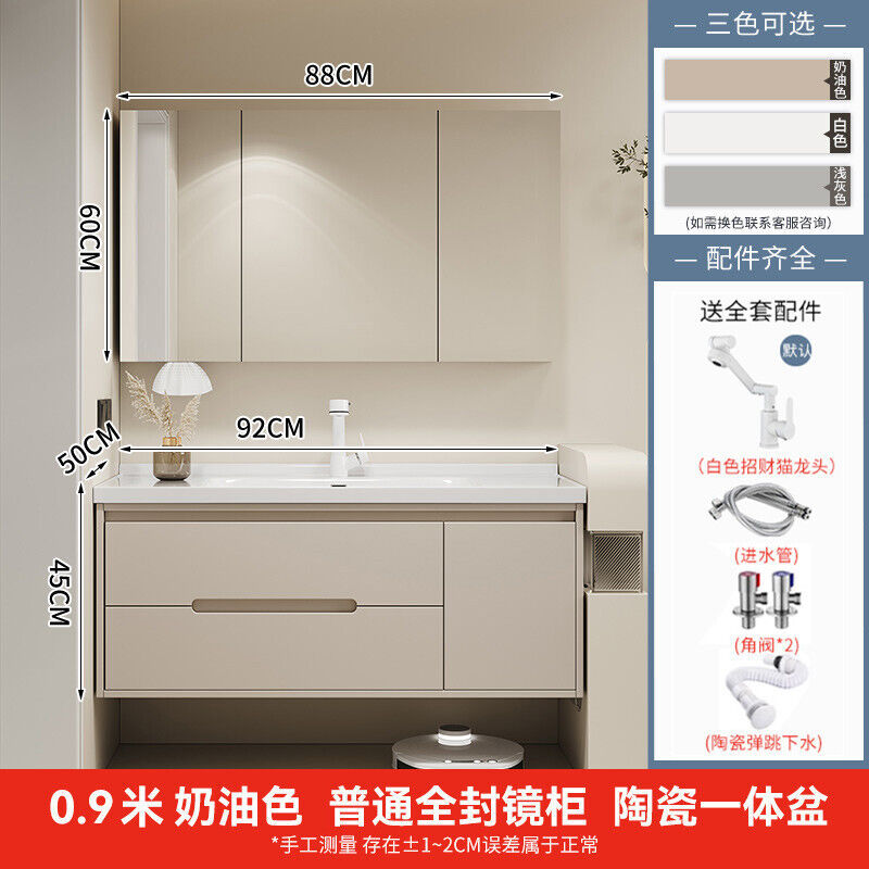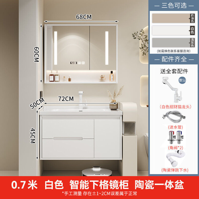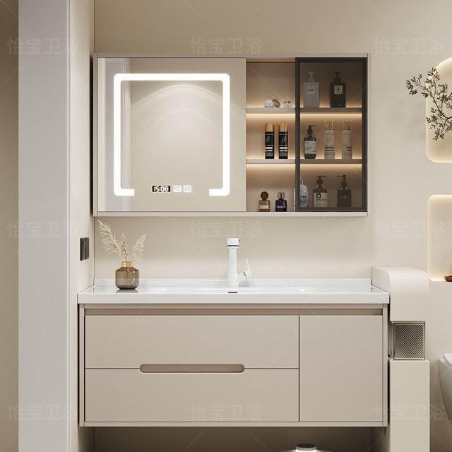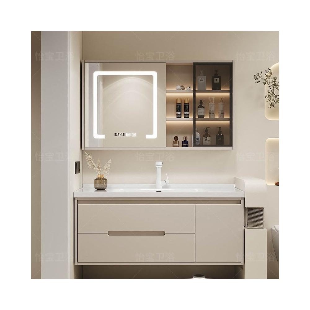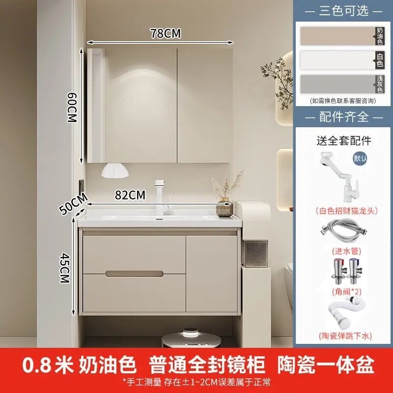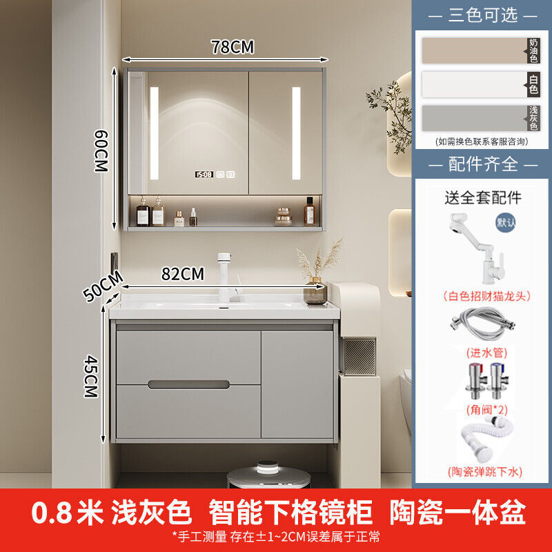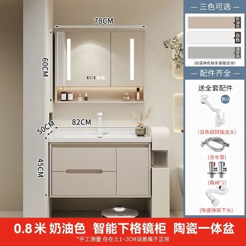 幕辭家居 簡約智能浴室櫃橡木烤漆洗手池組合陶瓷一體盆衛生間洗臉盆洗漱臺 825
