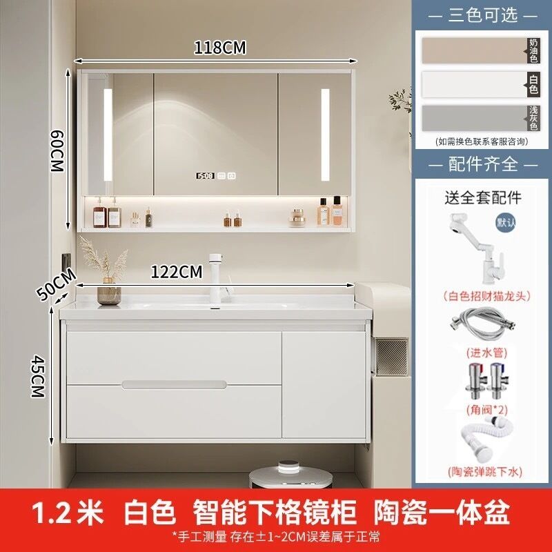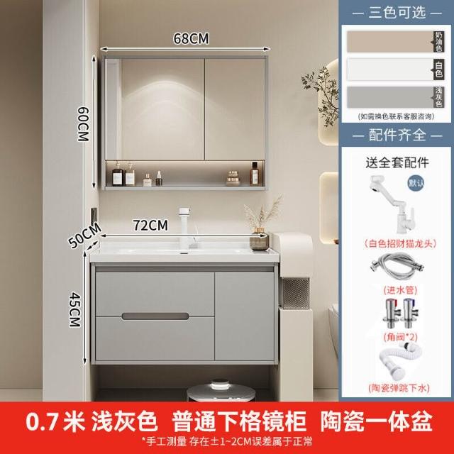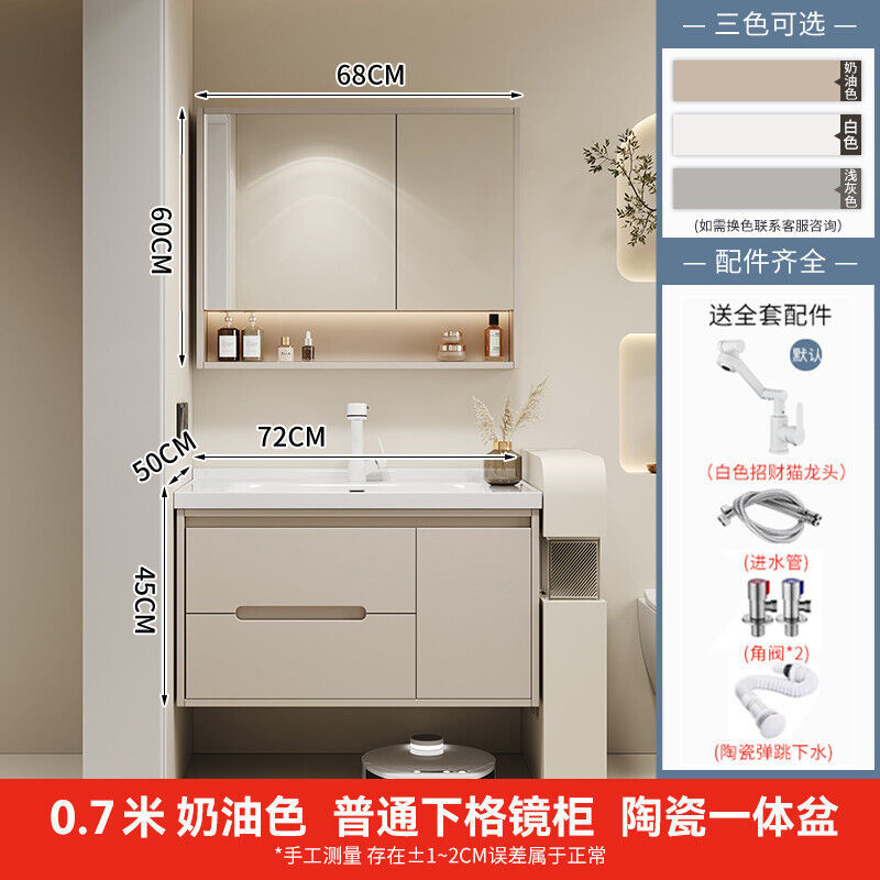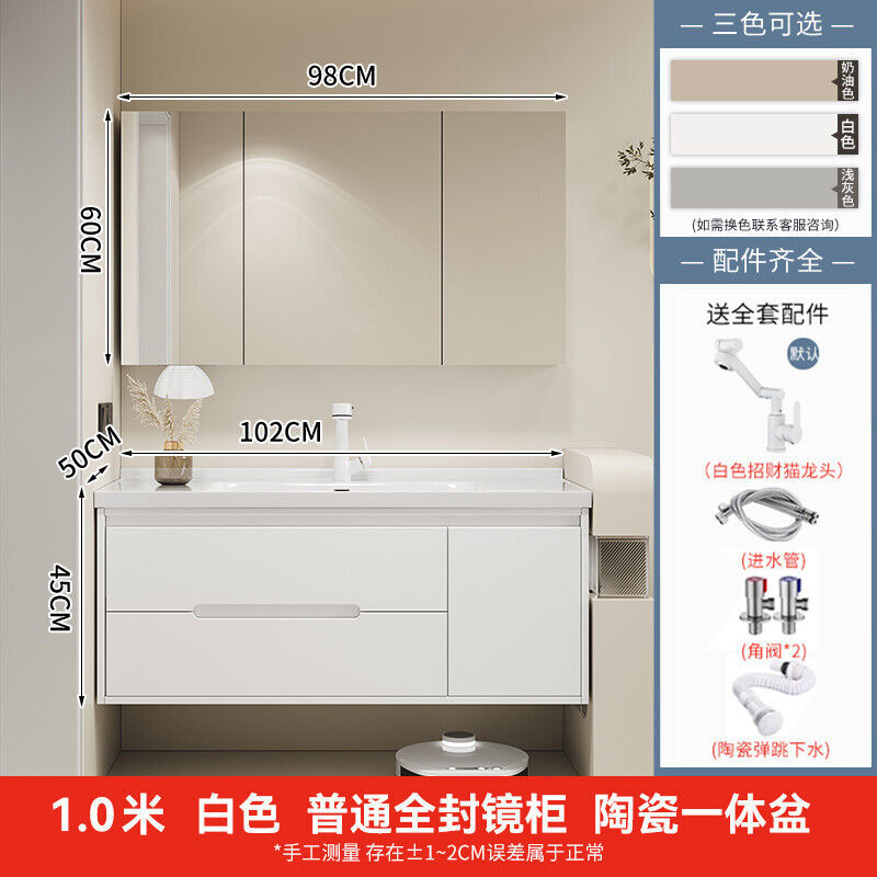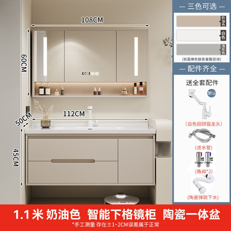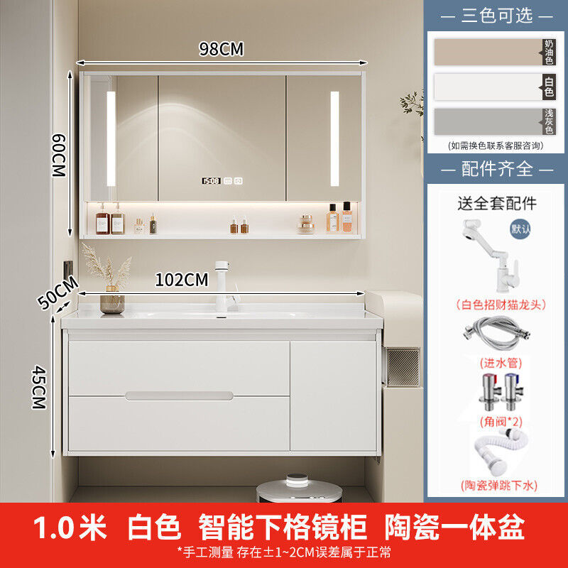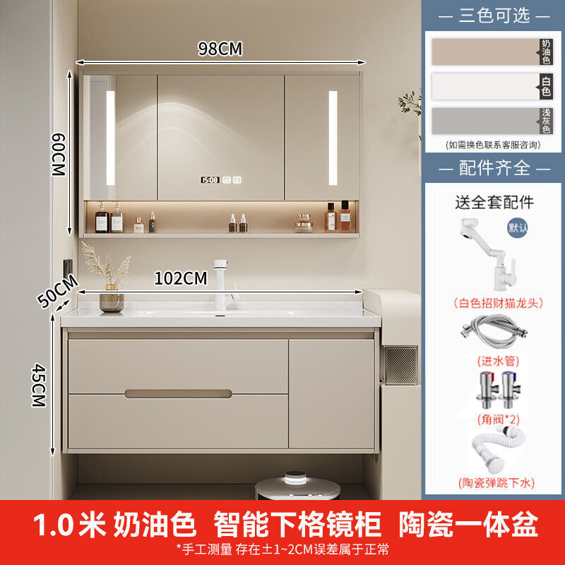 幕辭家居 簡約智能浴室櫃橡木烤漆洗手池組合陶瓷一體盆衛生間洗臉盆洗漱臺 825