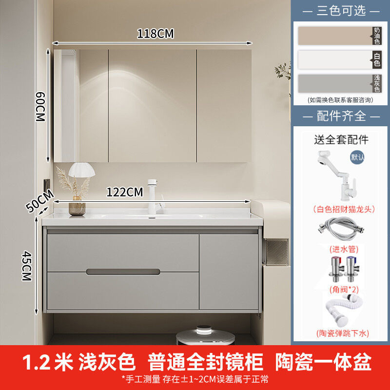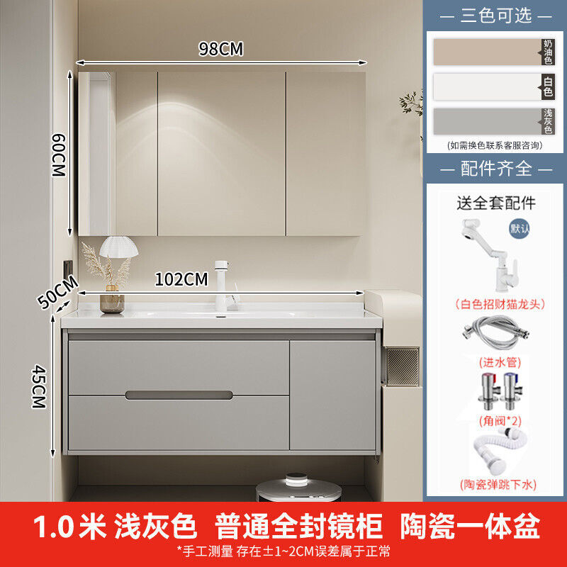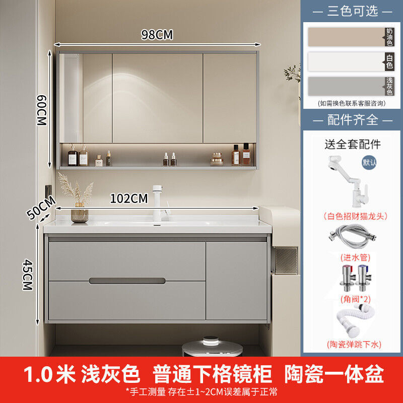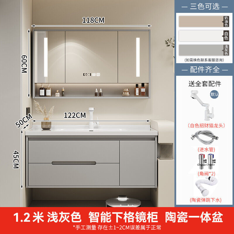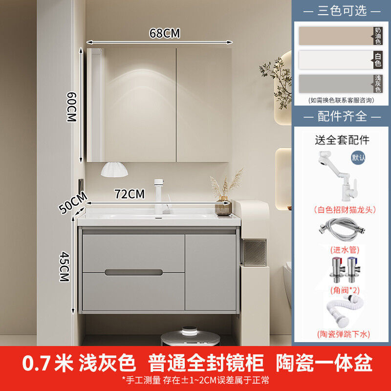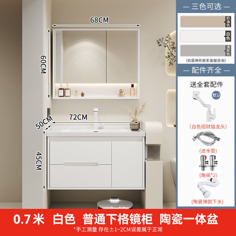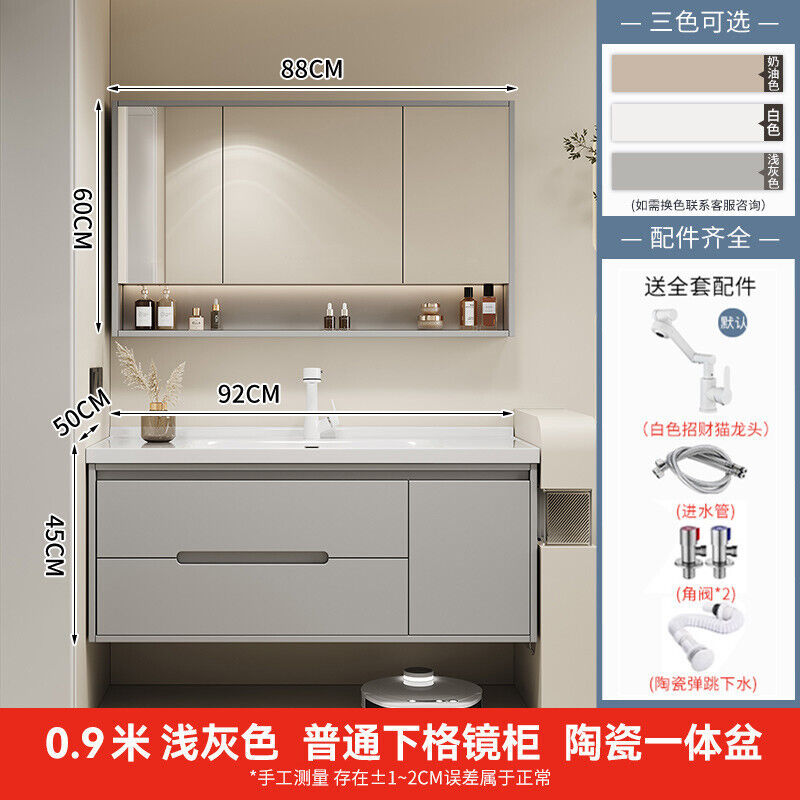 幕辭家居 簡約智能浴室櫃橡木烤漆洗手池組合陶瓷一體盆衛生間洗臉盆洗漱臺 825