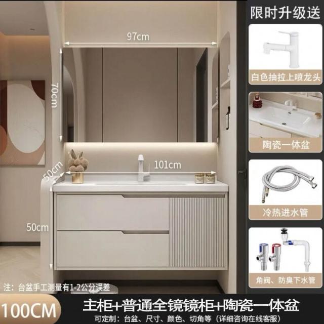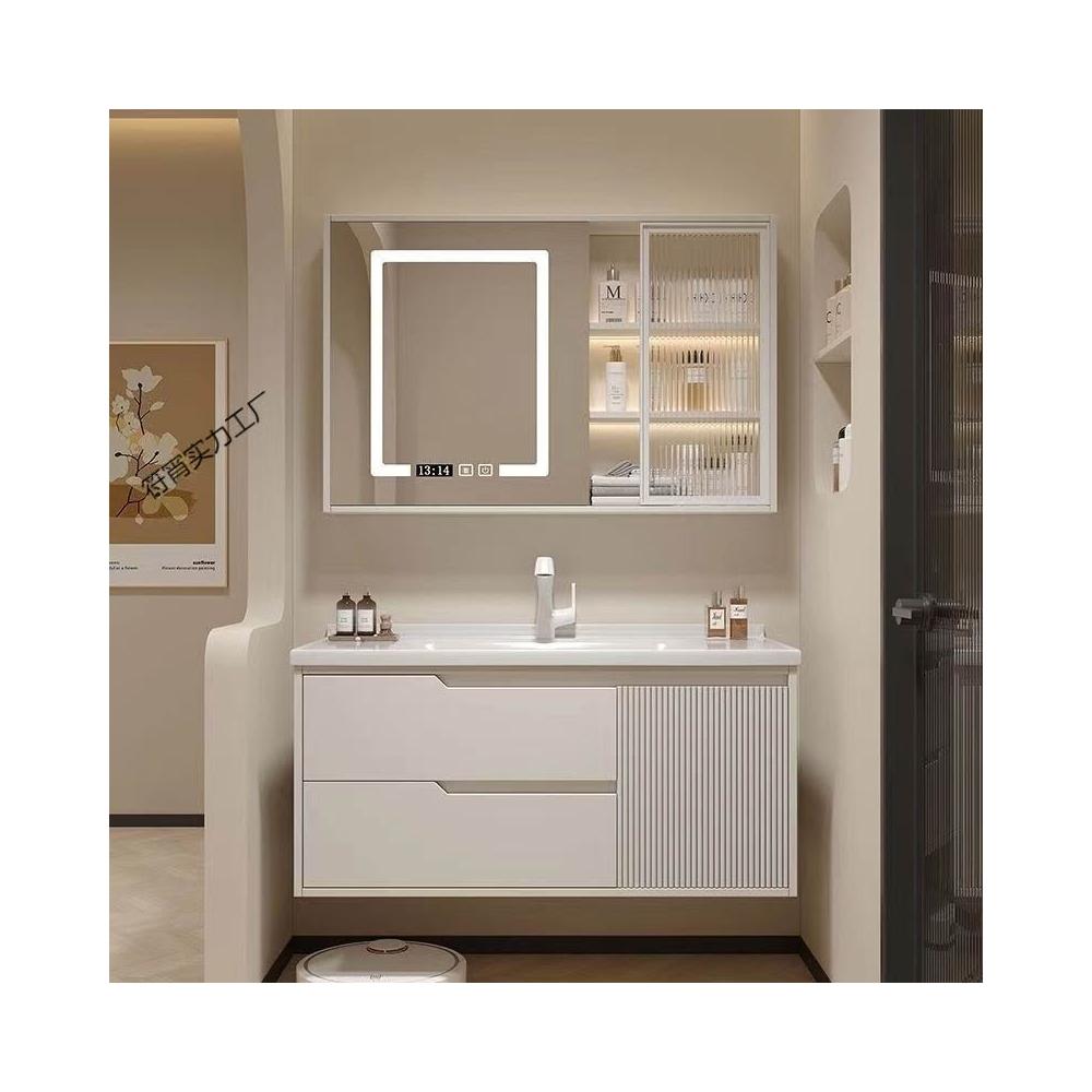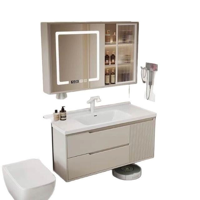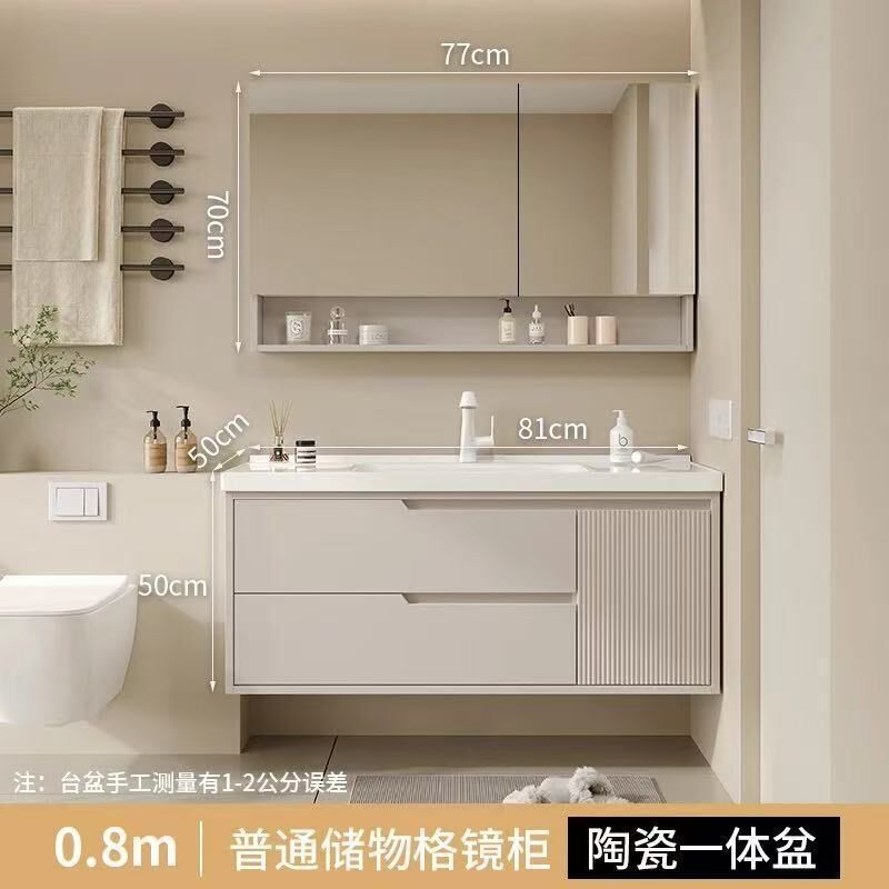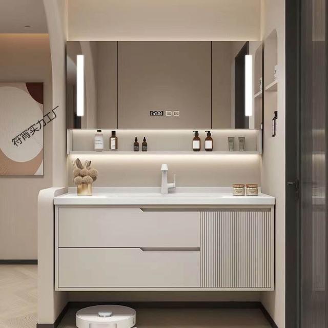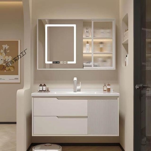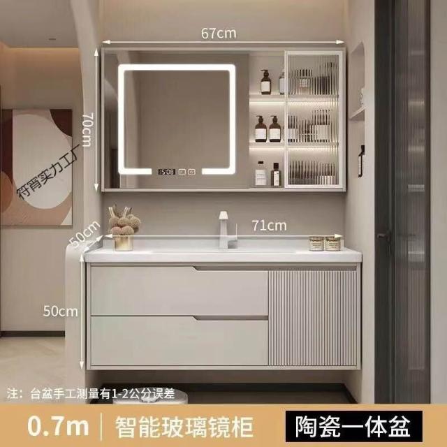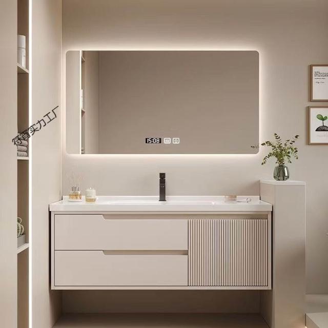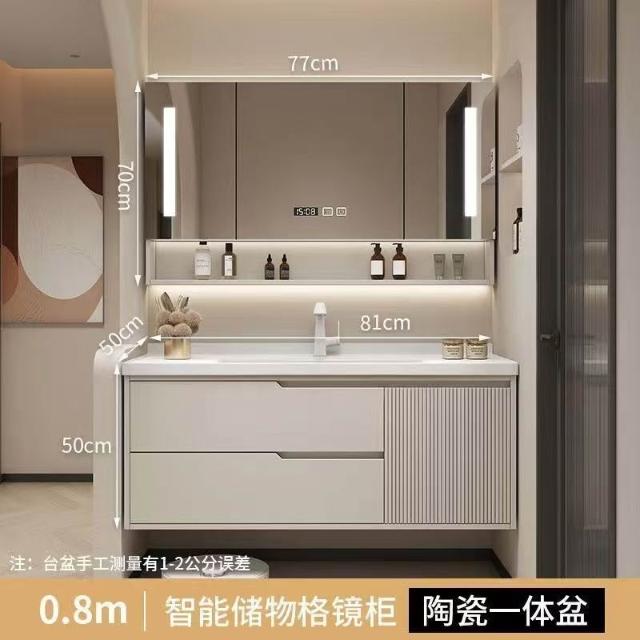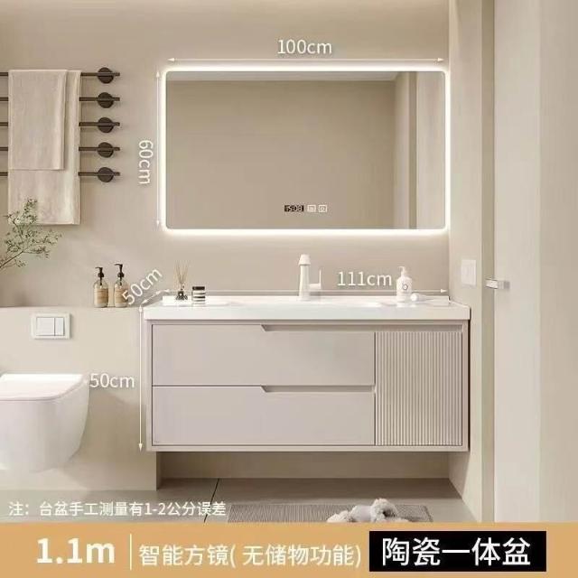 幕辭家居 橡木浴室櫃組合衛生間智能簡約洗手池陶瓷一體洗臉盆奶油風衛浴 8db