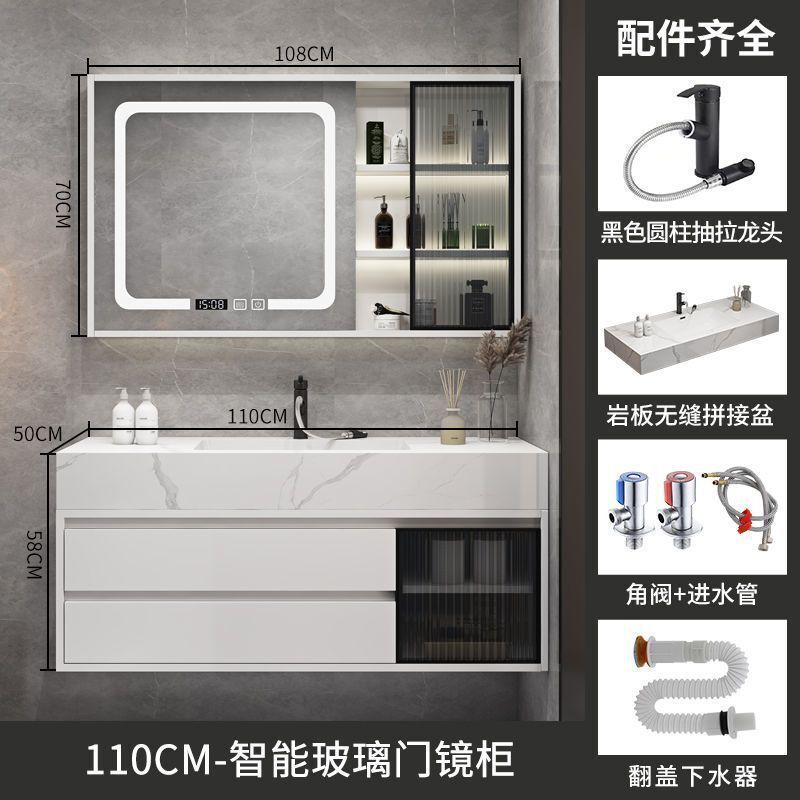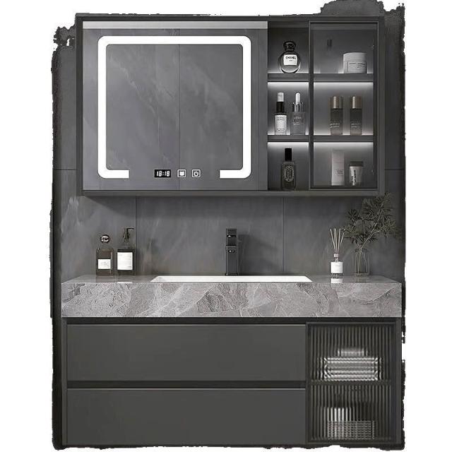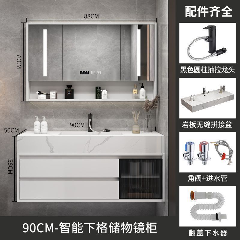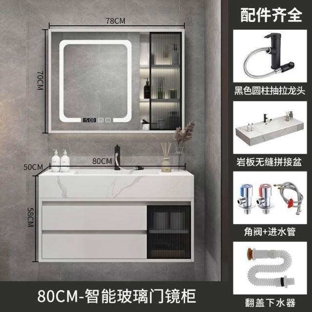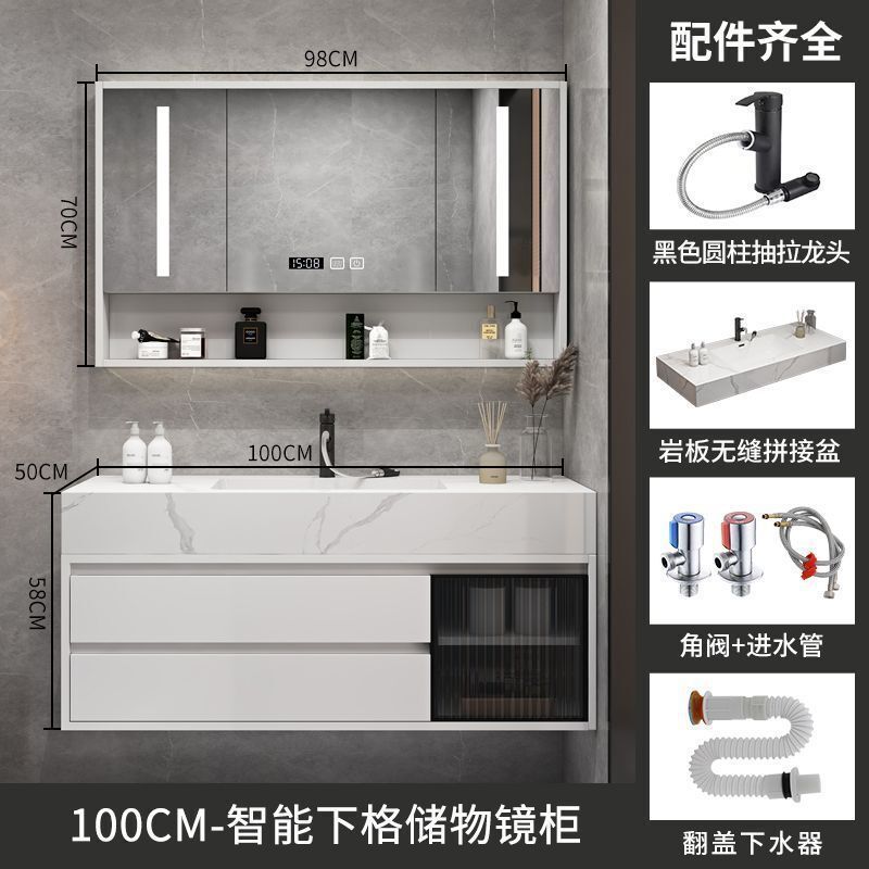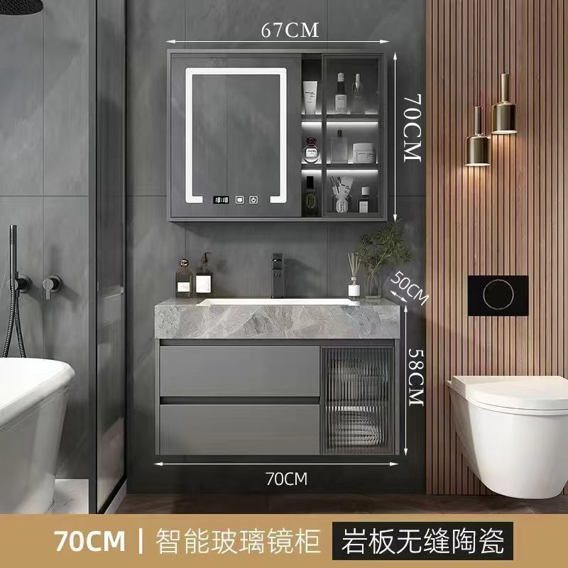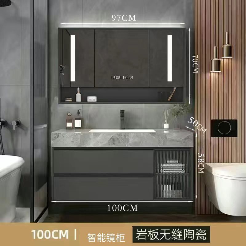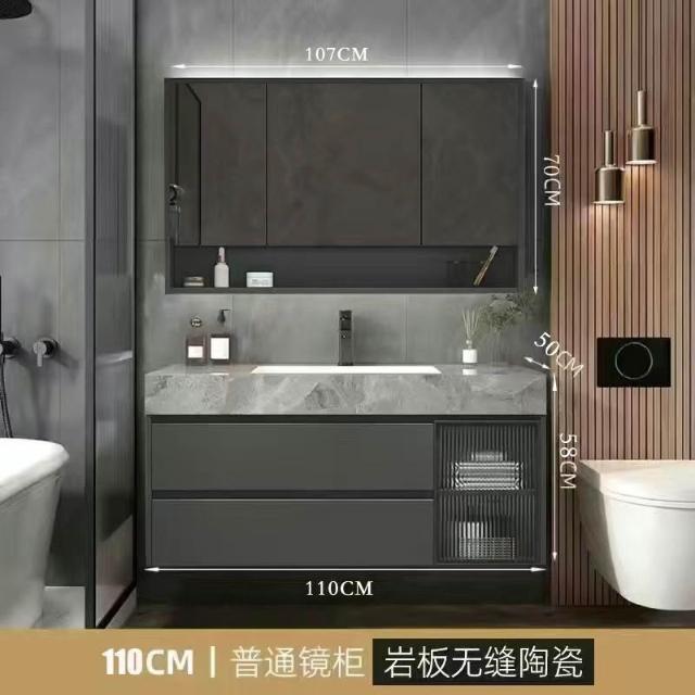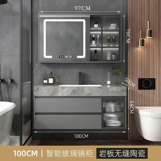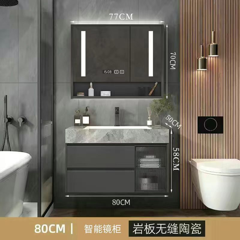 幕辭家居 現代智能網紅衛生間浴室櫃巖板無縫陶瓷一體盆洗漱臺洗臉盆櫃組合 13e