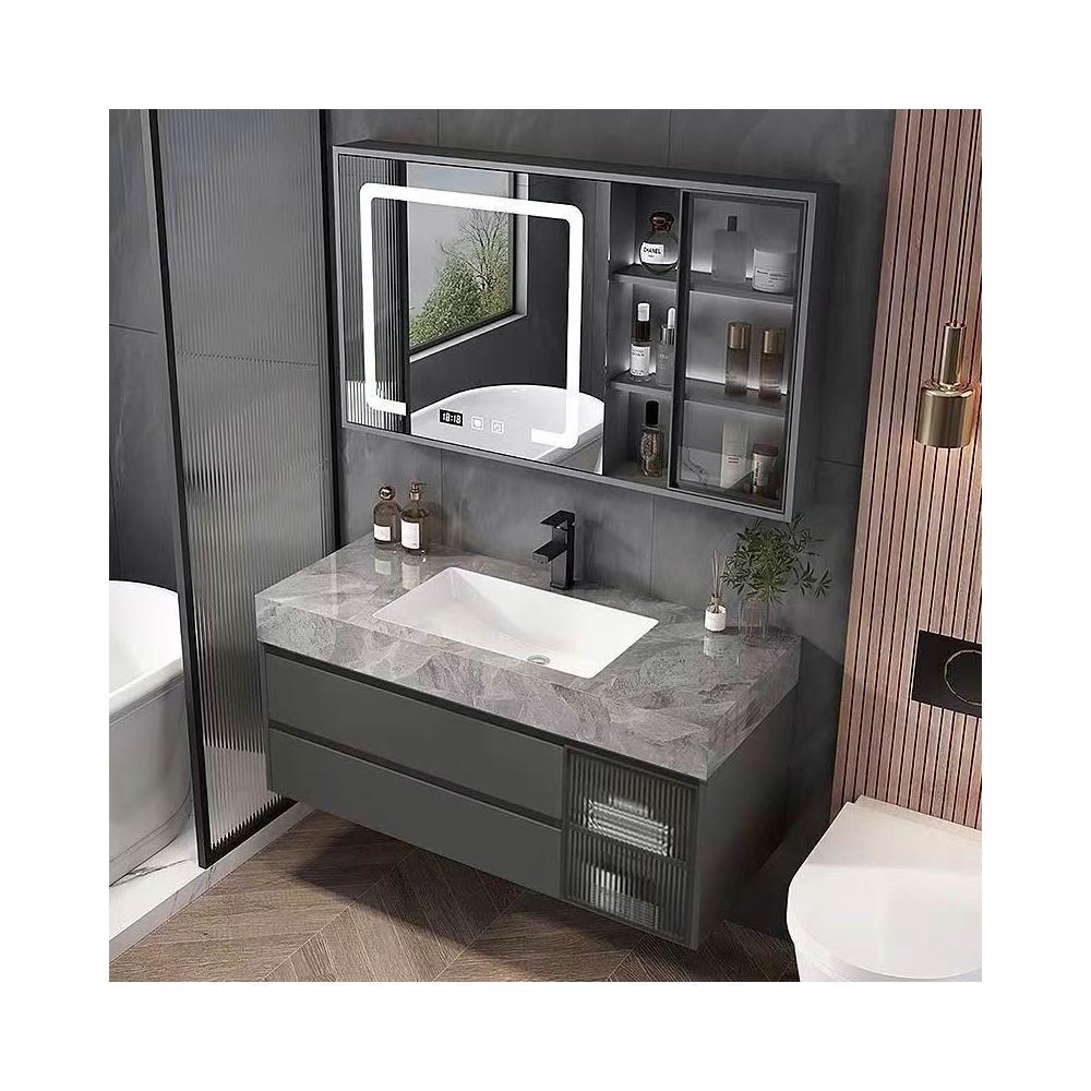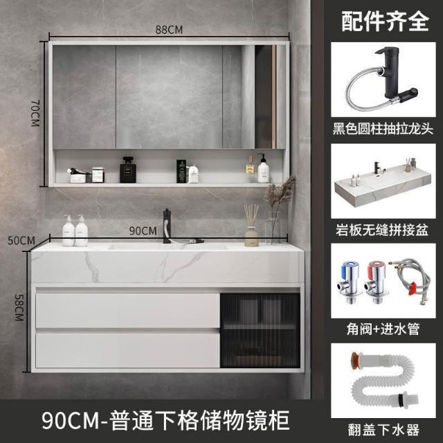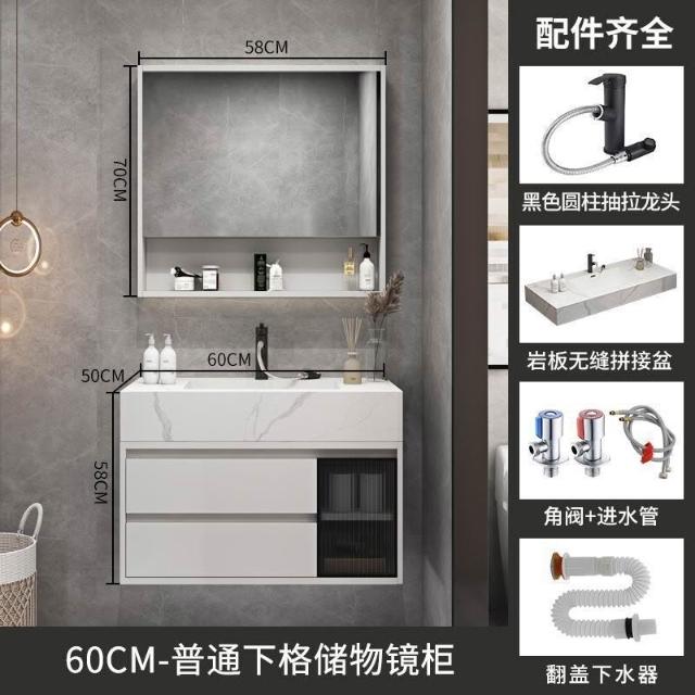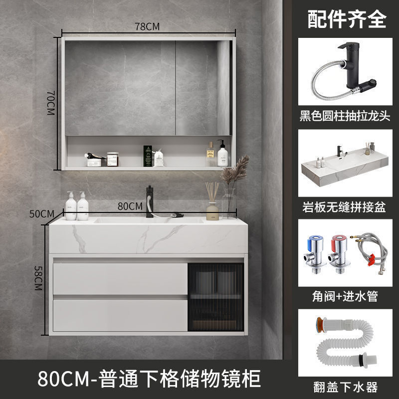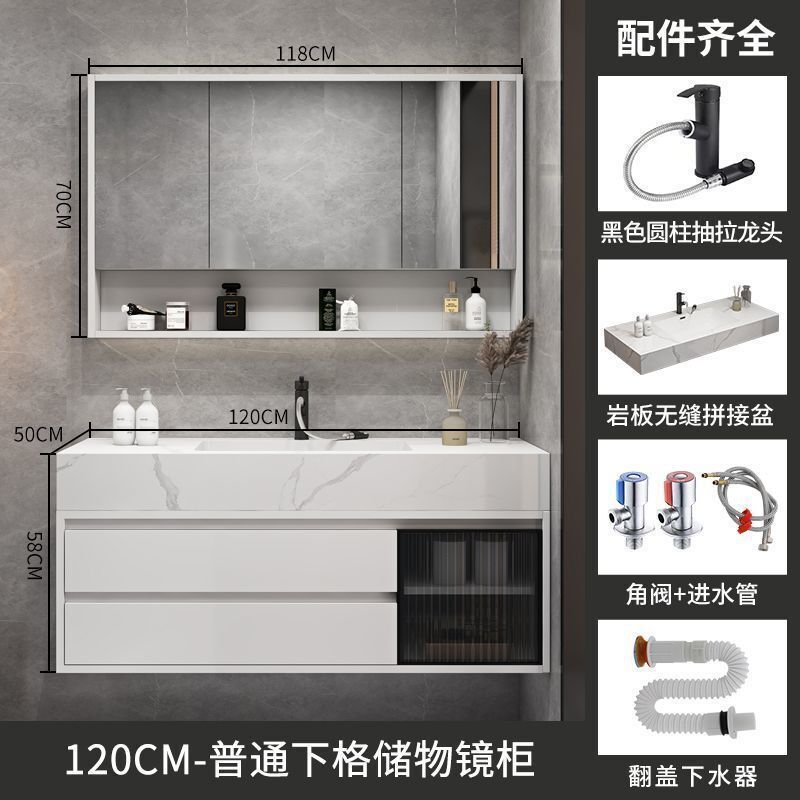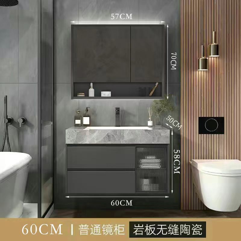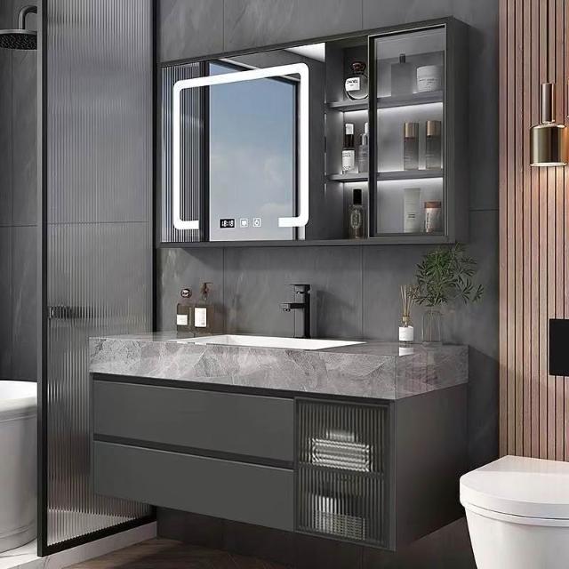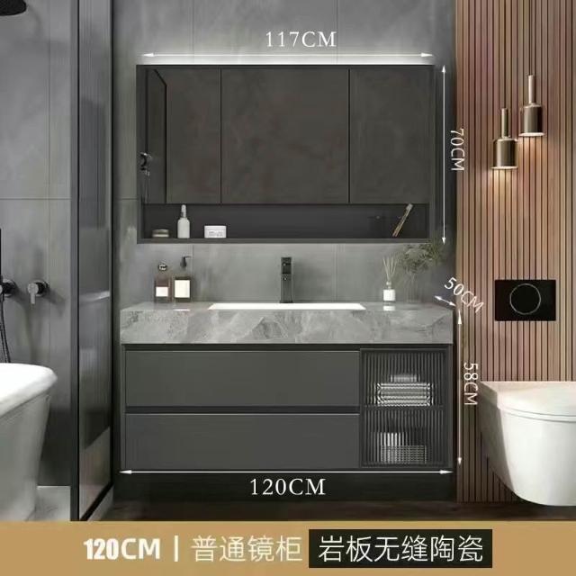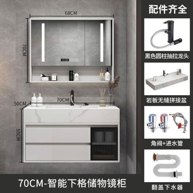 幕辭家居 現代智能網紅衛生間浴室櫃巖板無縫陶瓷一體盆洗漱臺洗臉盆櫃組合 13e