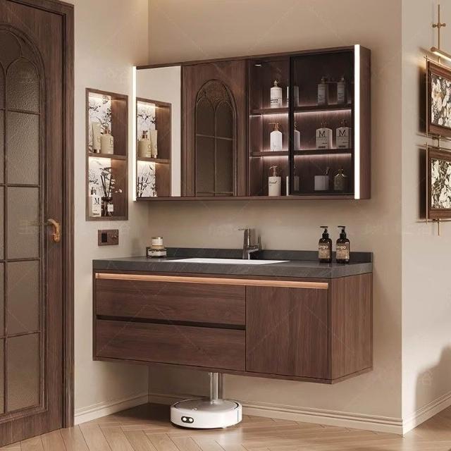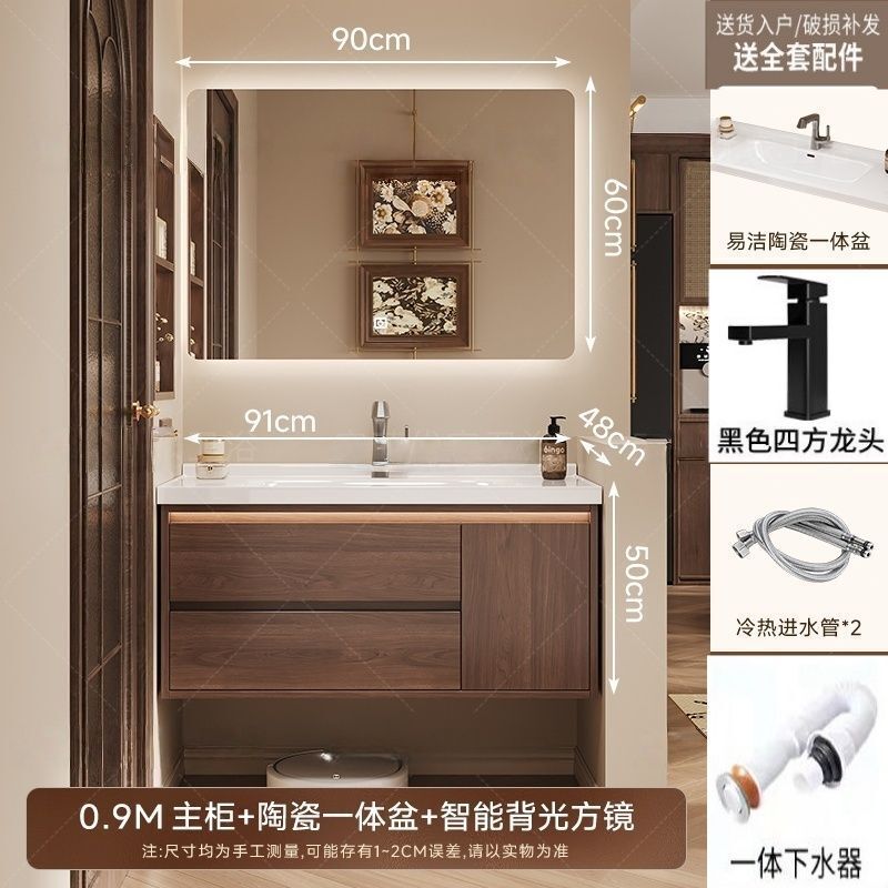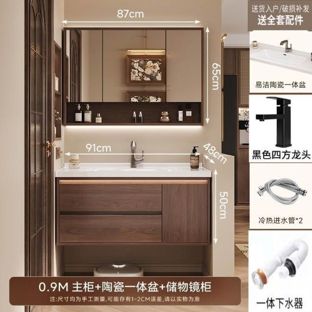 幕辭家居 組合洗手盆洗臉35巖板一體衛生間中式浴室櫃M6胡桃木陶瓷洗手盆 6e9