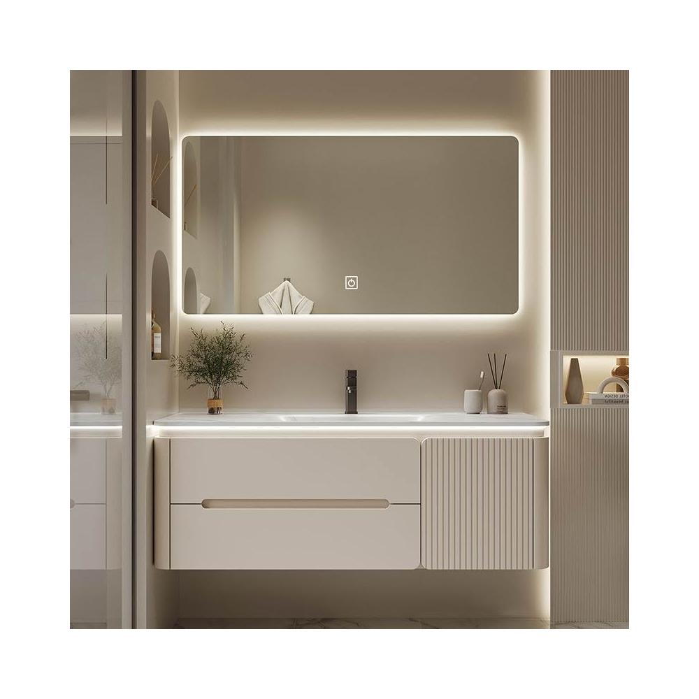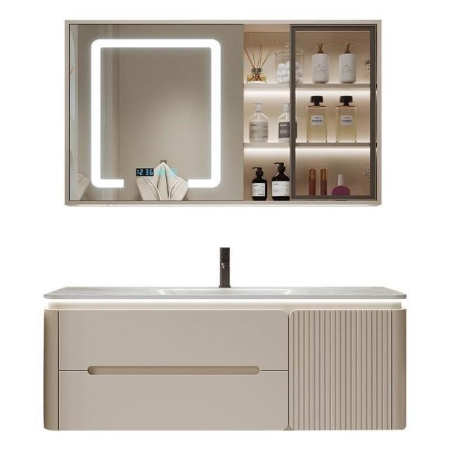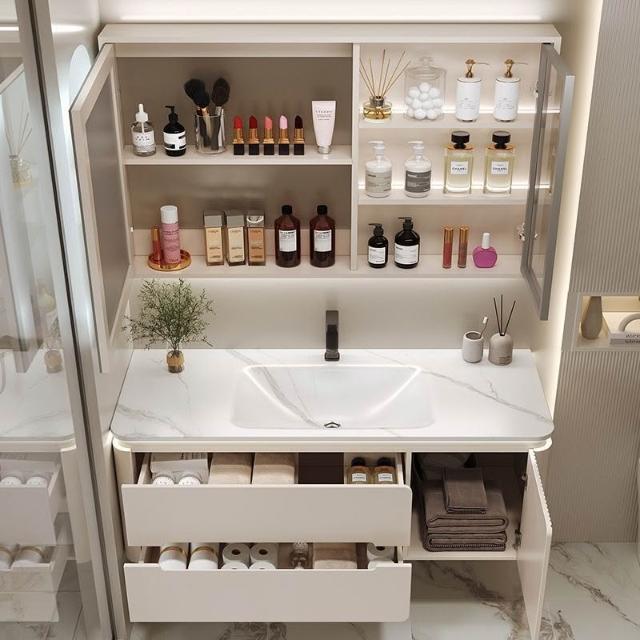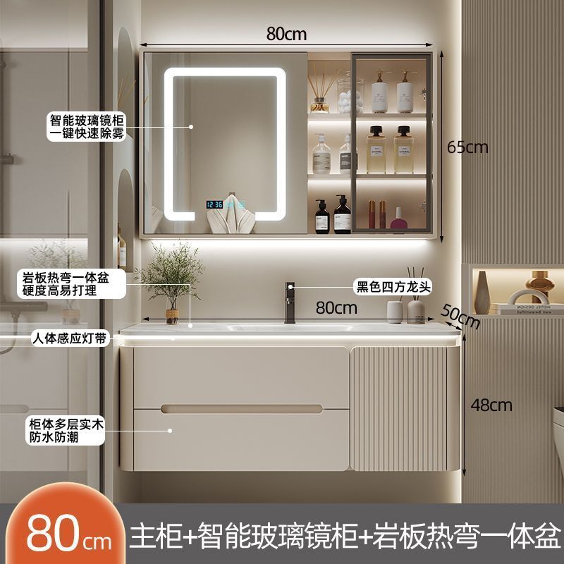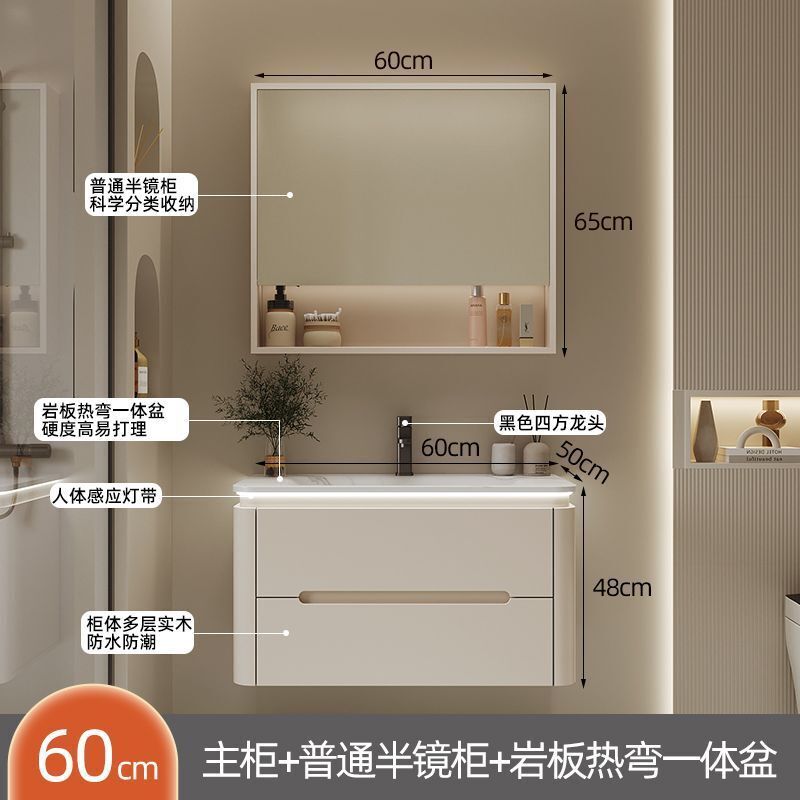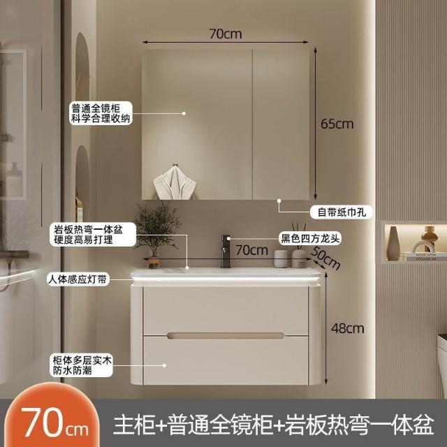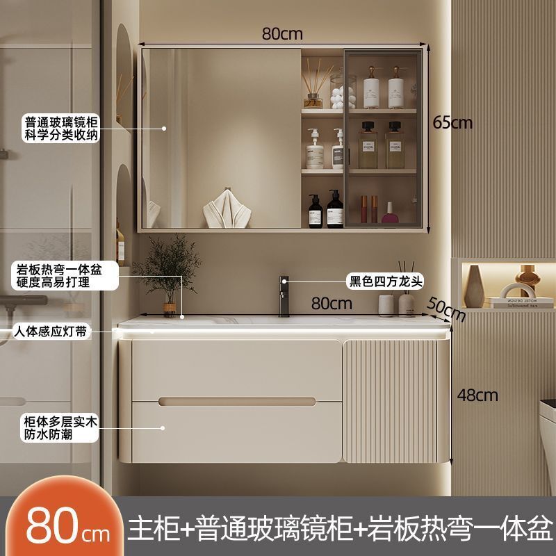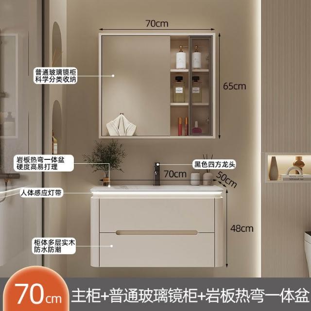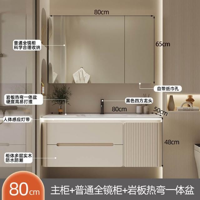 幕辭家居 圓角巖板熱彎一體衛生間奶油浴室櫃洗手洗手盆洗臉盆洗漱鏡櫃組合 fbd