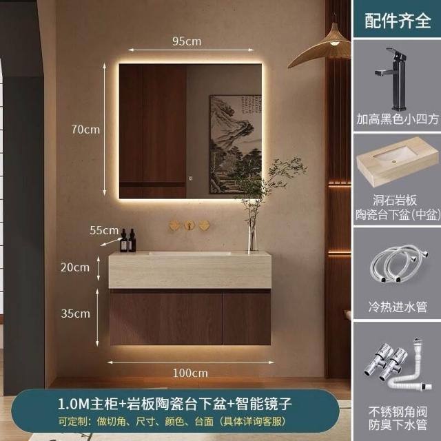 幕辭家居 現代洞石一體巖板智能浴室櫃組合衛生間洗手盆衛浴櫃洗臉池可 8bb