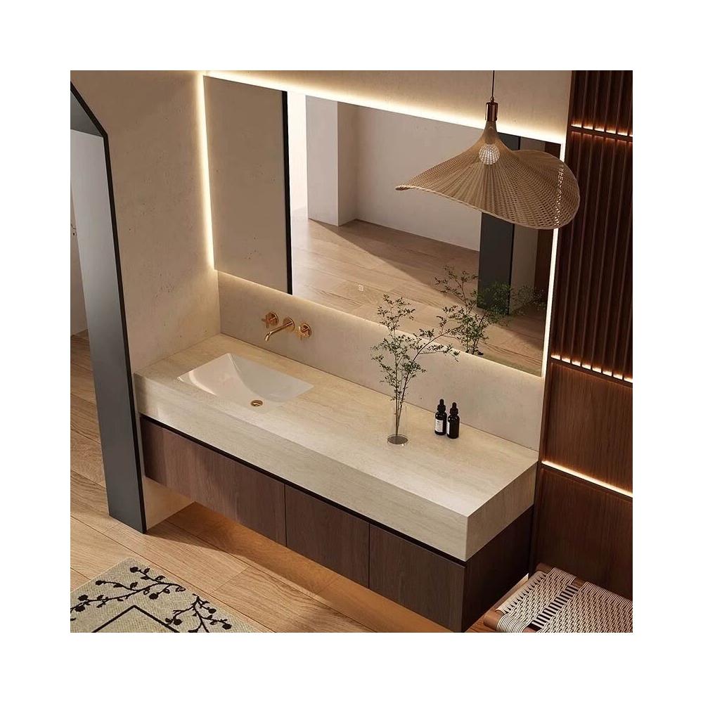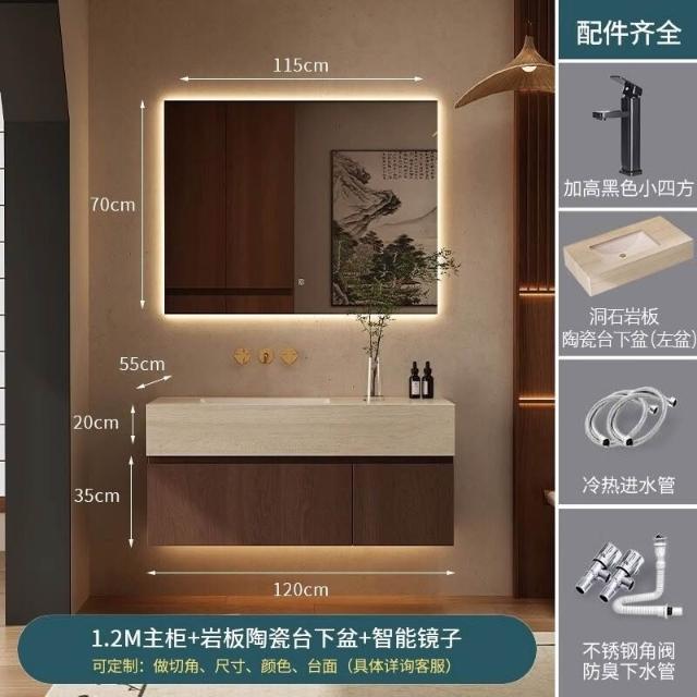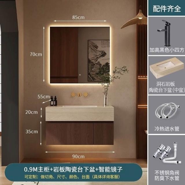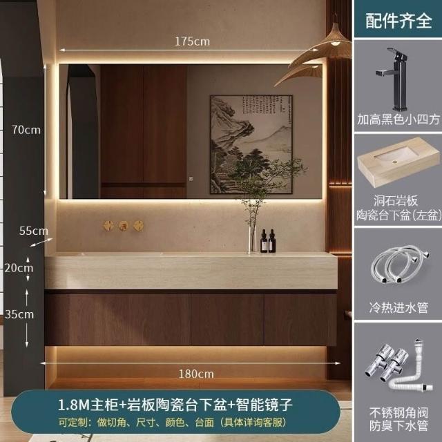 幕辭家居 現代洞石一體巖板智能浴室櫃組合衛生間洗手盆衛浴櫃洗臉池可 8bb