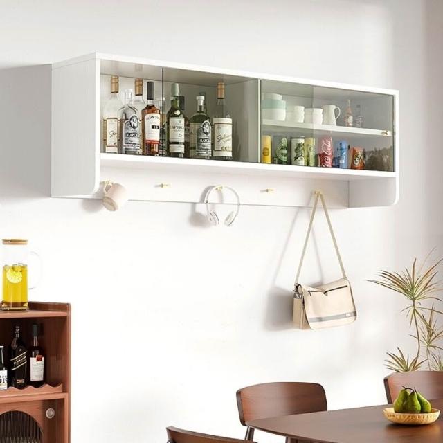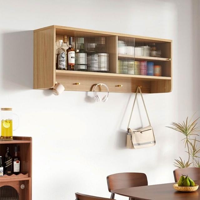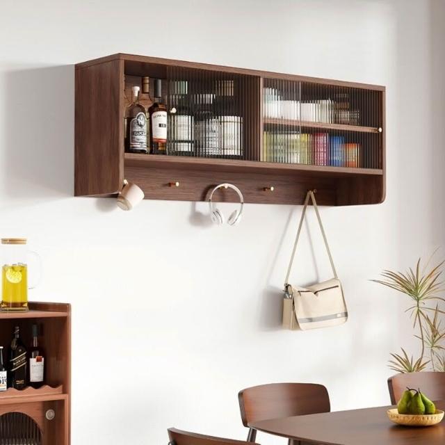 幕辭家居 餐廳廚房吊櫃墻壁櫃墻上儲物櫃實木掛墻置物架餐桌墻面餐邊收納r* 1de