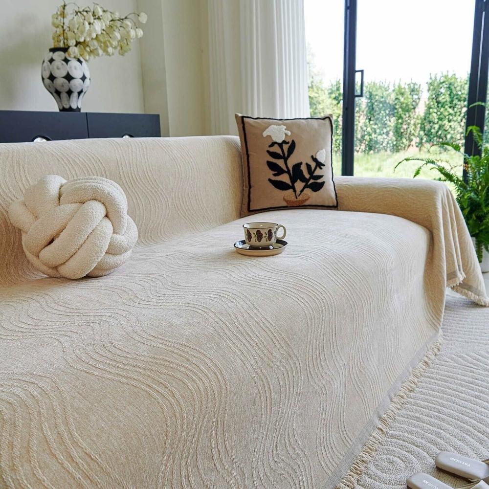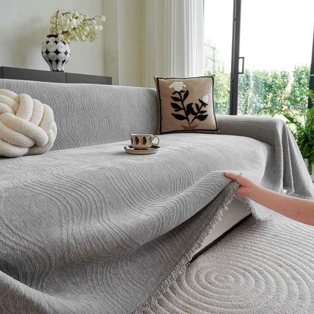 幕辭家居 加厚純色雪尼爾沙發巾簡約現代沙發蓋布一整片全蓋沙發套罩毯 1b1