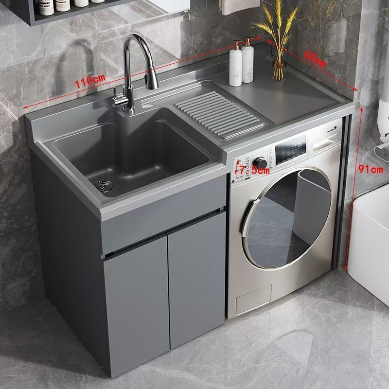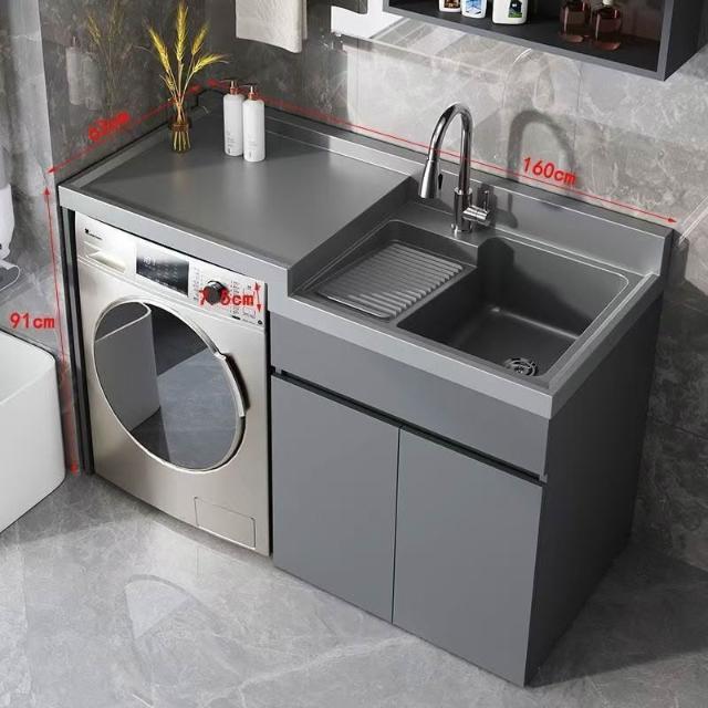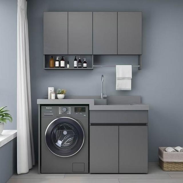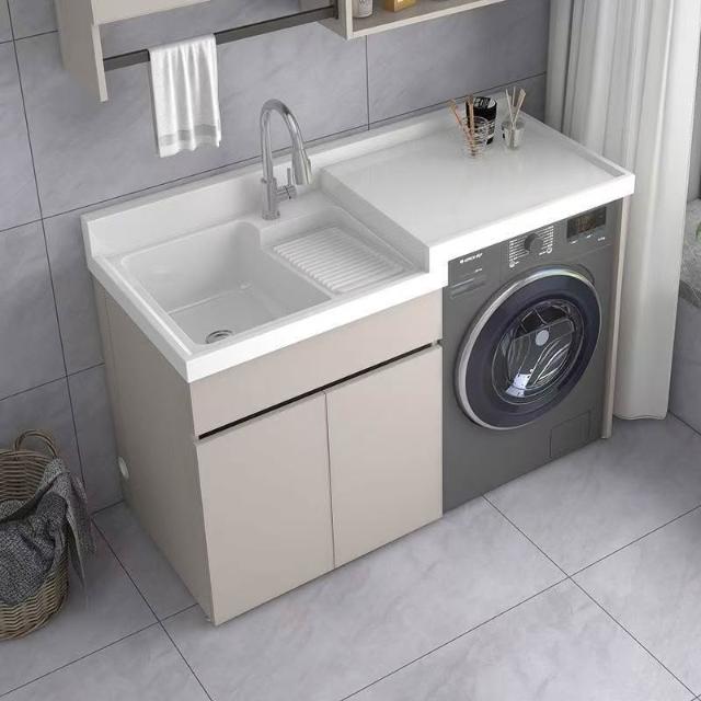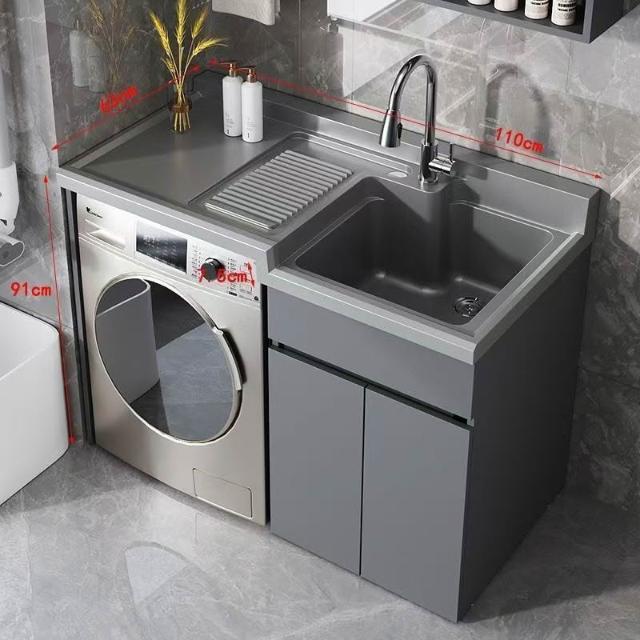 幕辭家居 Kxh洗衣櫃石英石高低盆洗衣機一體櫃陽臺洗衣槽池帶搓衣板蜂窩鋁 899