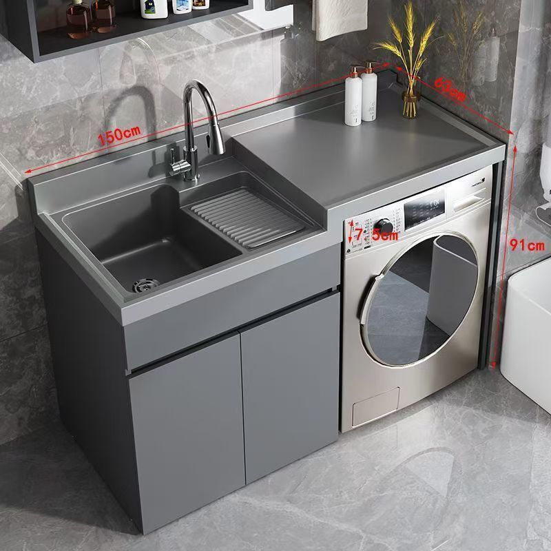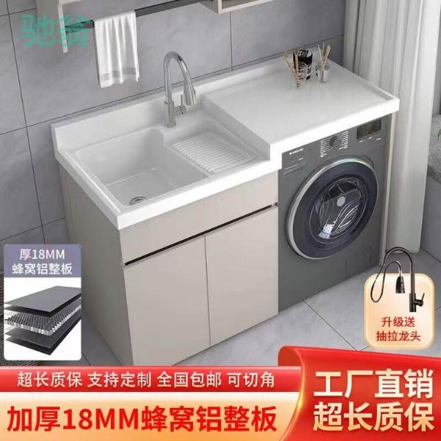 幕辭家居 Kxh洗衣櫃石英石高低盆洗衣機一體櫃陽臺洗衣槽池帶搓衣板蜂窩鋁 899