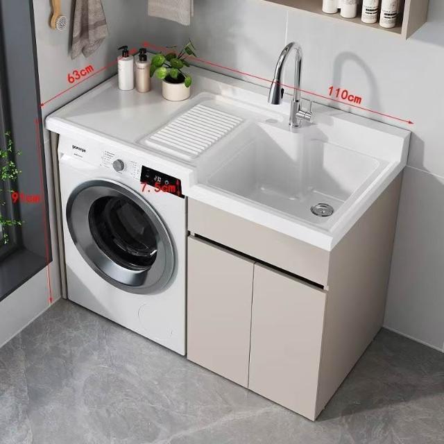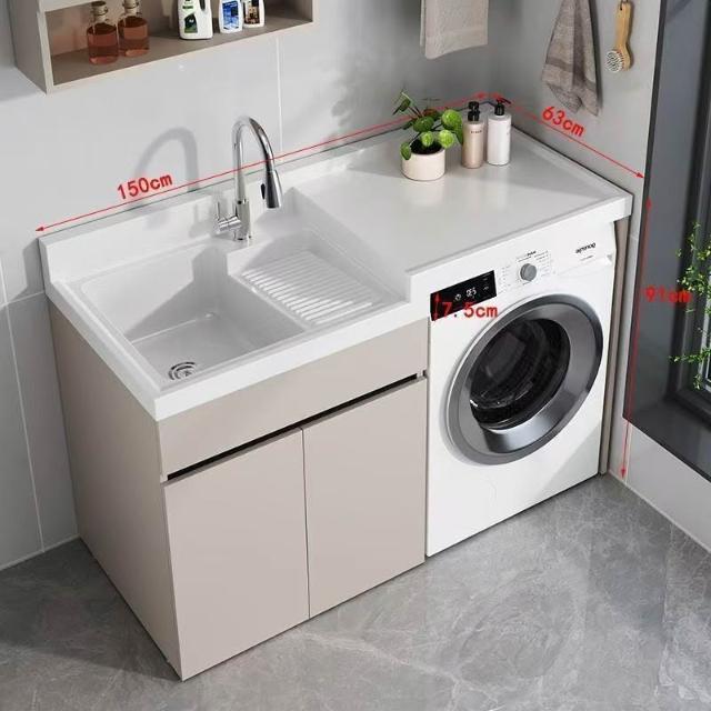 幕辭家居 Kxh洗衣櫃石英石高低盆洗衣機一體櫃陽臺洗衣槽池帶搓衣板蜂窩鋁 899