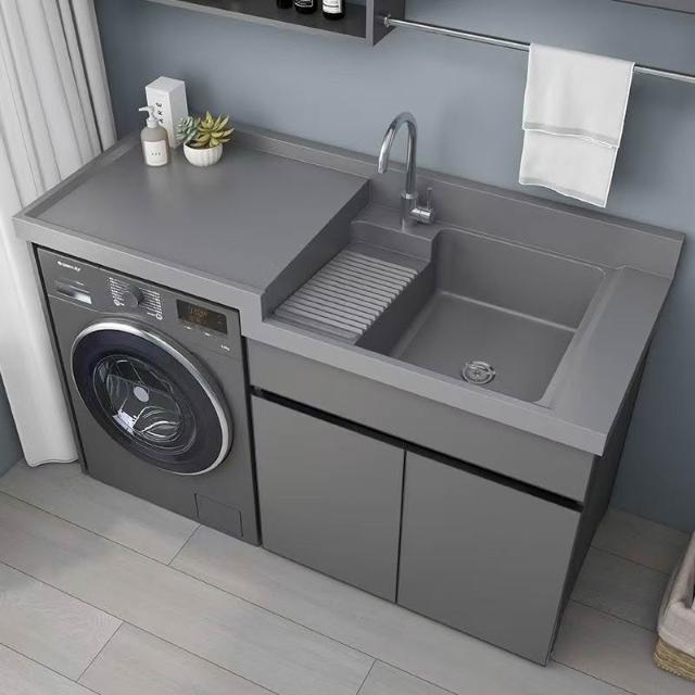 幕辭家居 Kxh洗衣櫃石英石高低盆洗衣機一體櫃陽臺洗衣槽池帶搓衣板蜂窩鋁 899