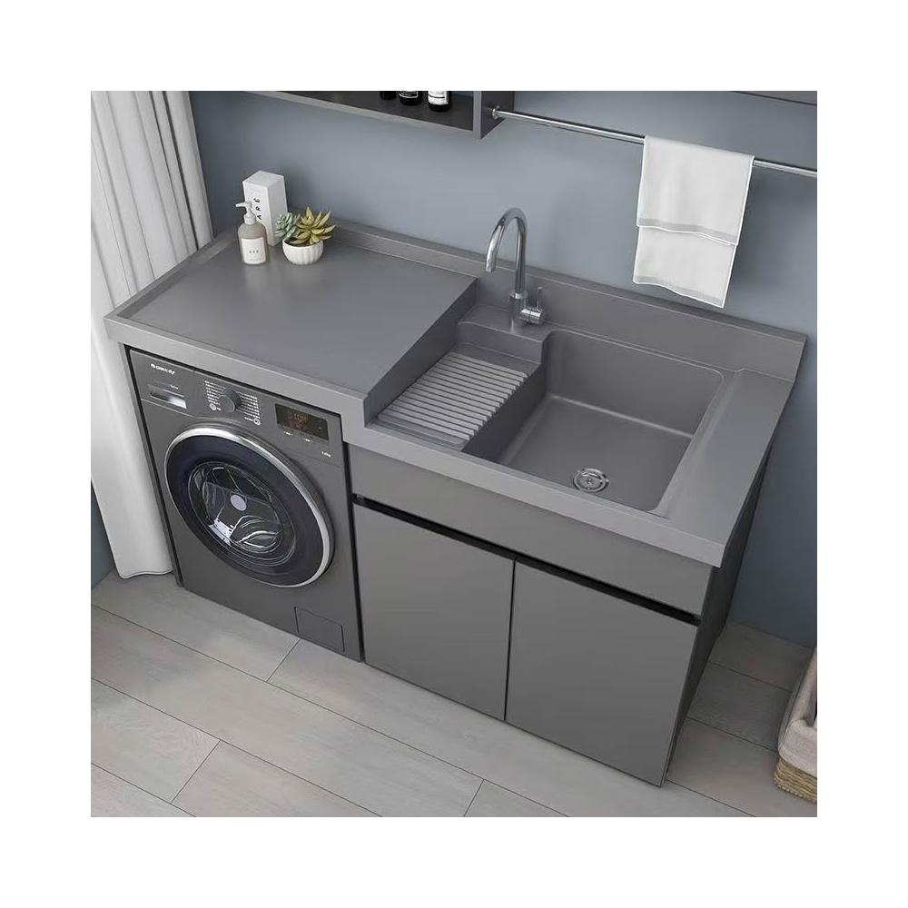 幕辭家居 Kxh洗衣櫃石英石高低盆洗衣機一體櫃陽臺洗衣槽池帶搓衣板蜂窩鋁 899