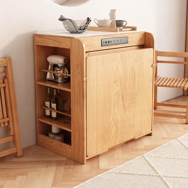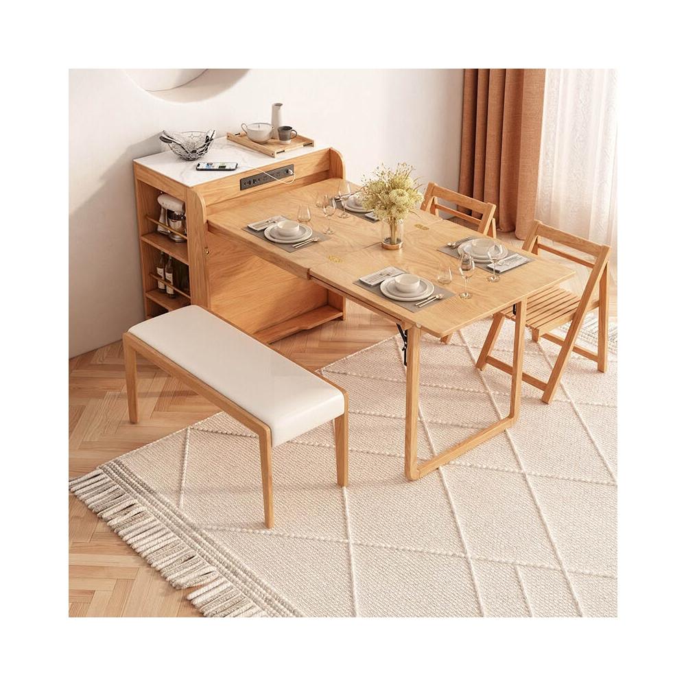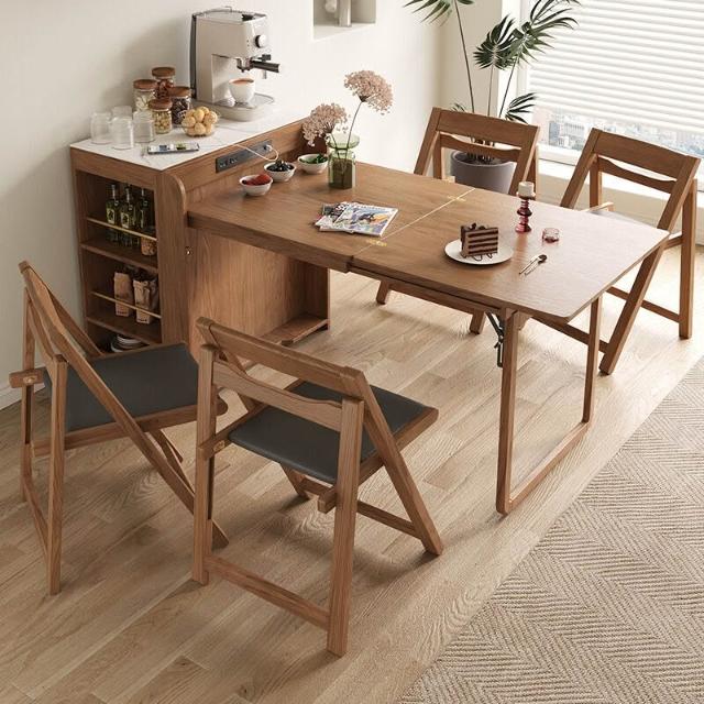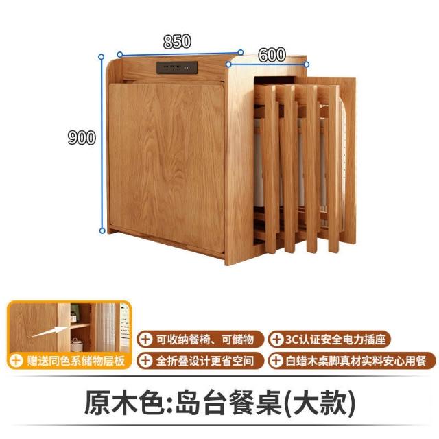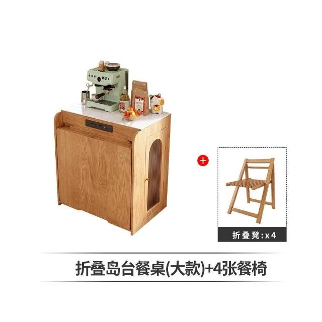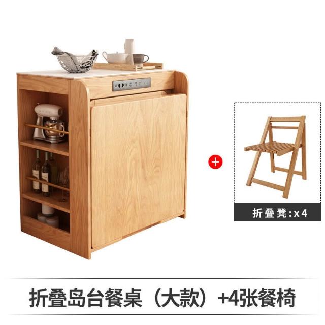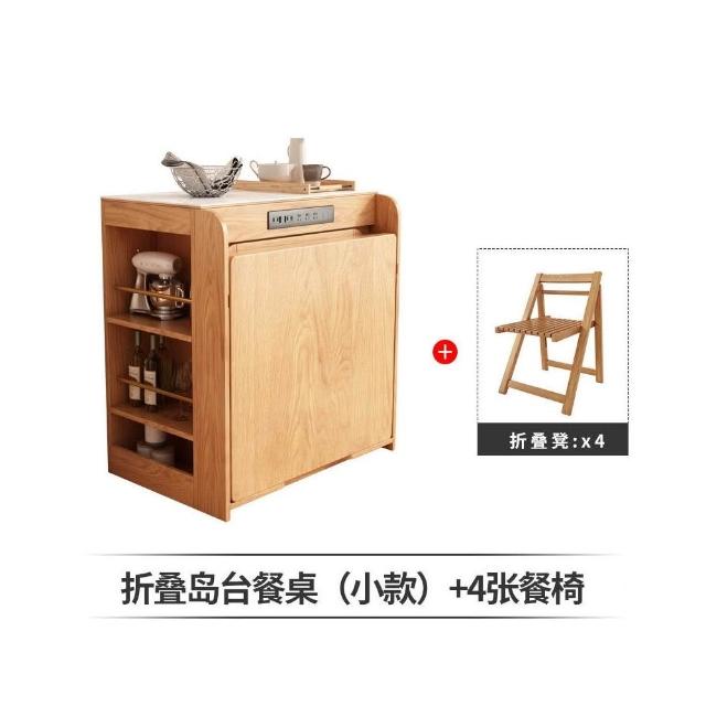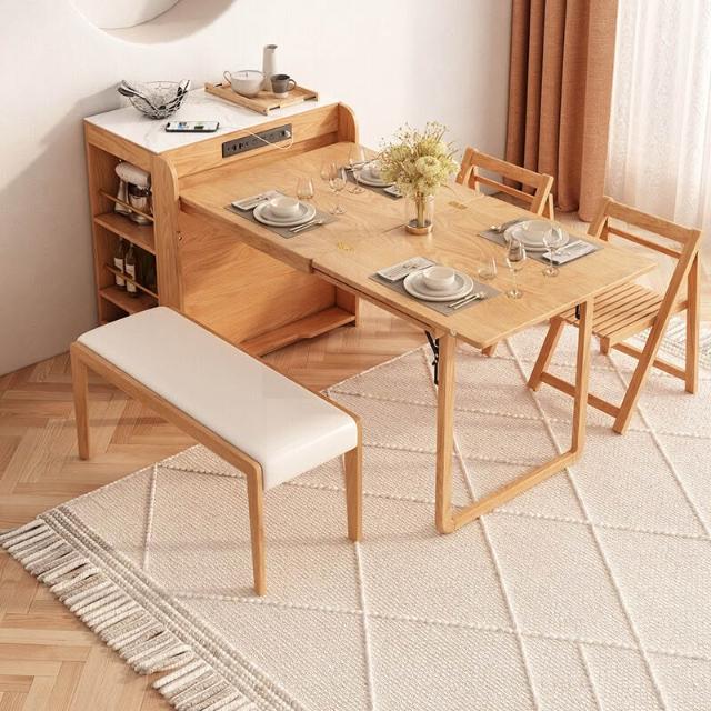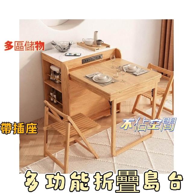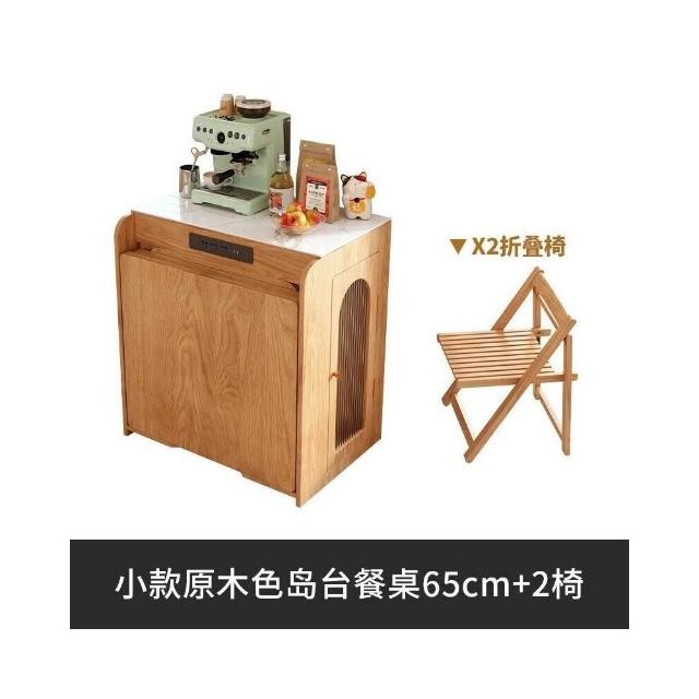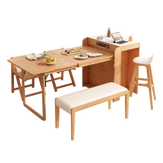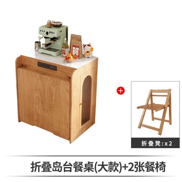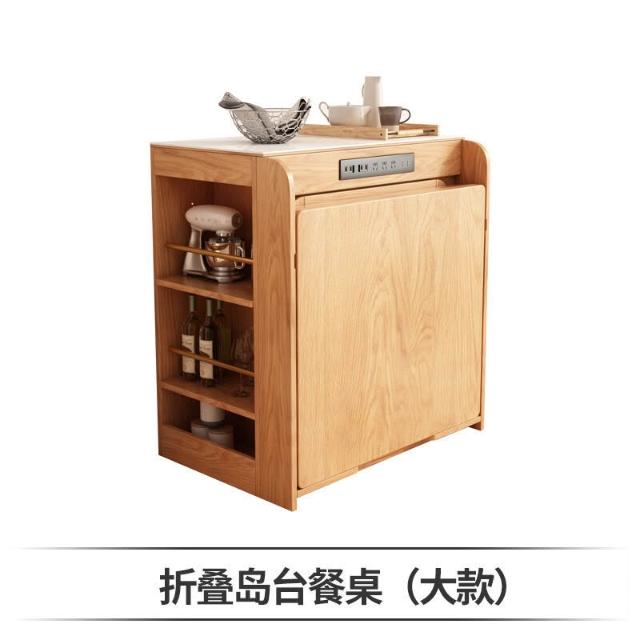 幕辭家居 日式實木餐桌島臺一體家用小戶型伸縮巖板飯桌多功能折疊收納吧臺 2eb