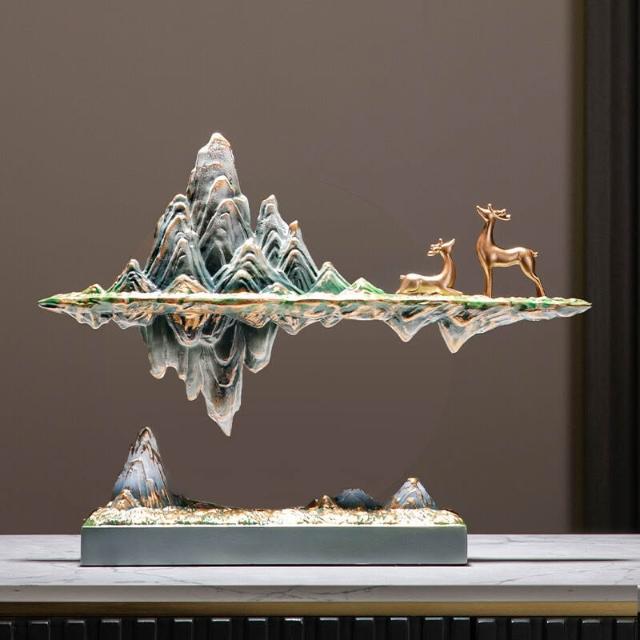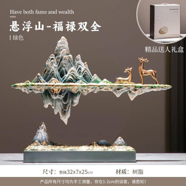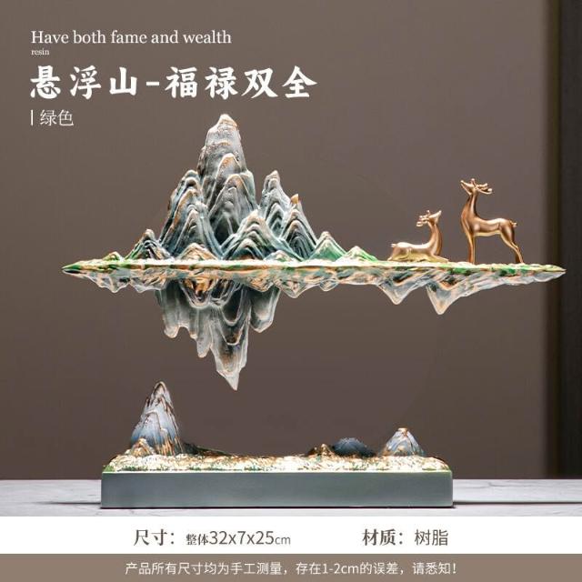 新中式懸浮假山擺件辦公室桌面裝飾品客廳藝術高級感小眾喬遷禮物 595
