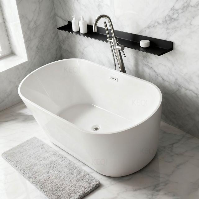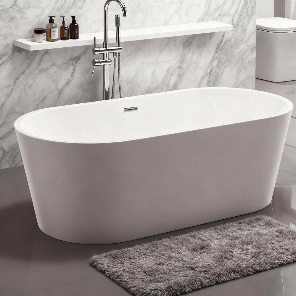 幕辭家居 成人家用亞克力浴缸獨立式白色落地衛生間橢圓酒店普通獨立浴缸 977