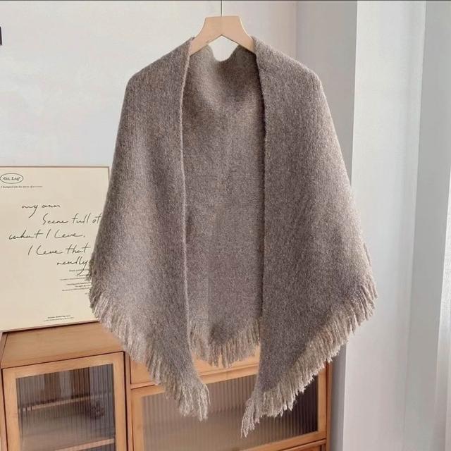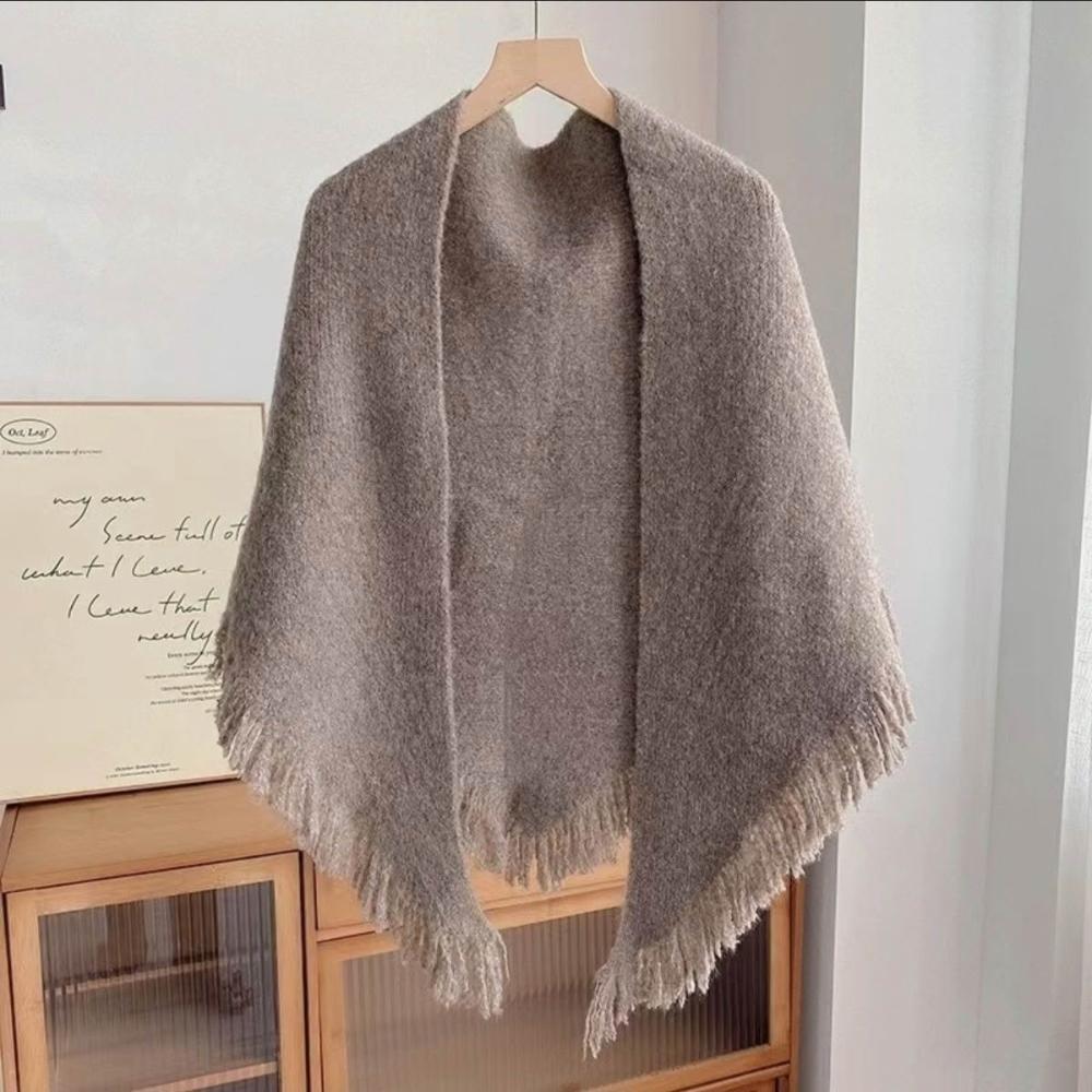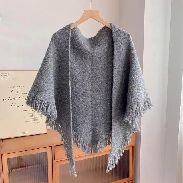 2026新款 氣質羊毛針織雙面流蘇三角披肩女款外搭春秋冬天加厚 516