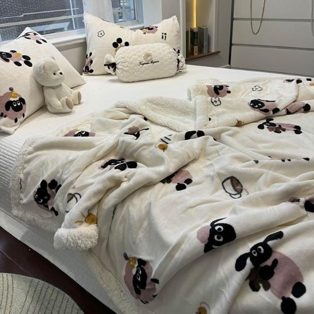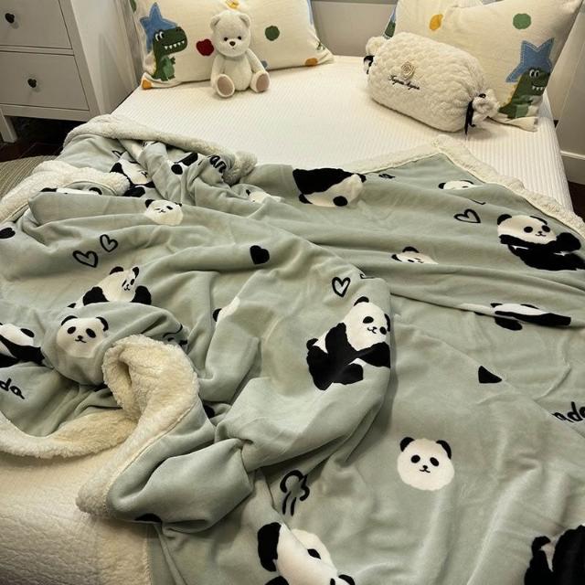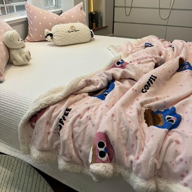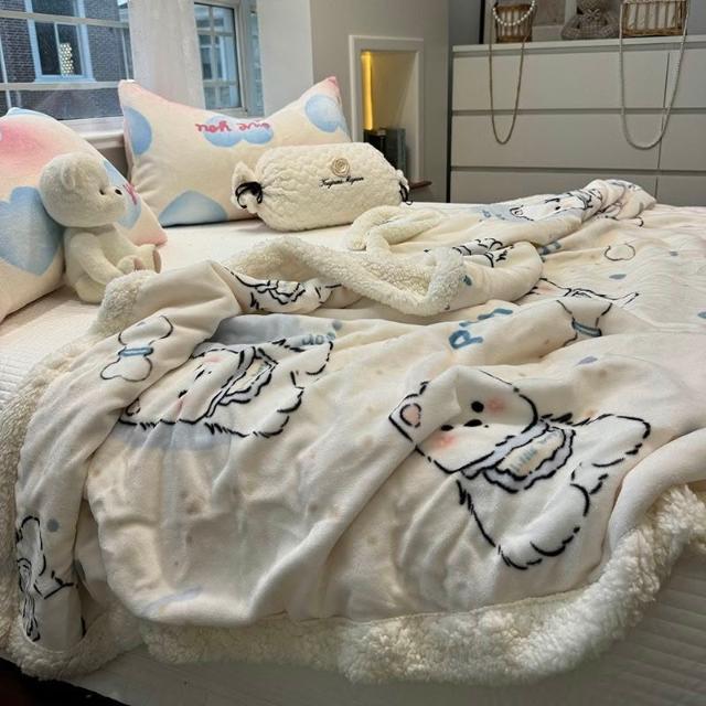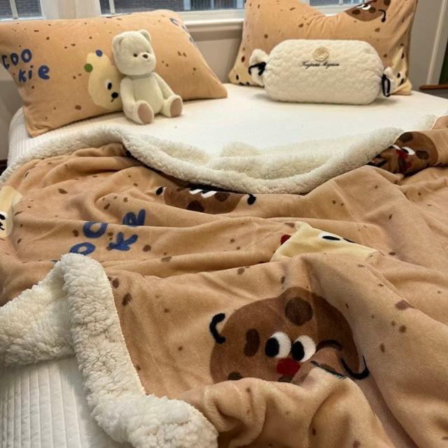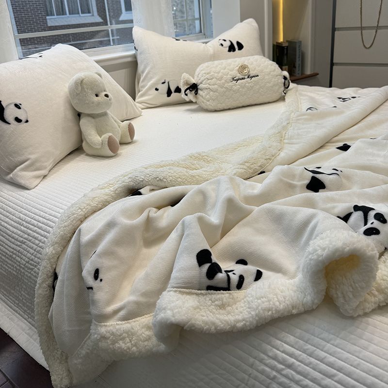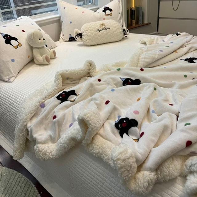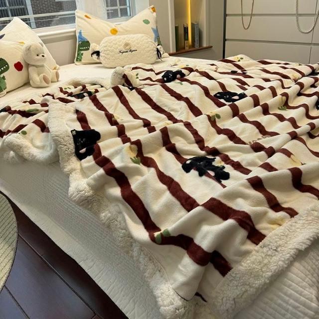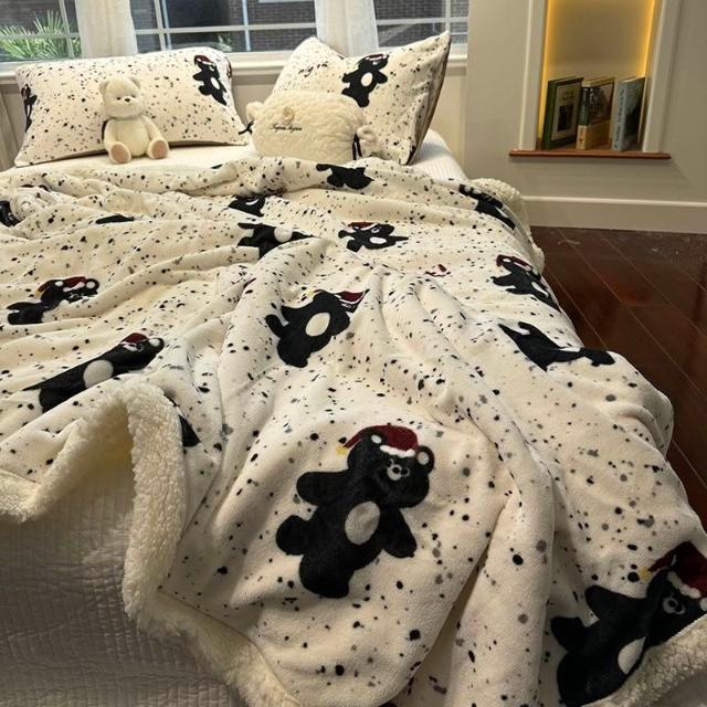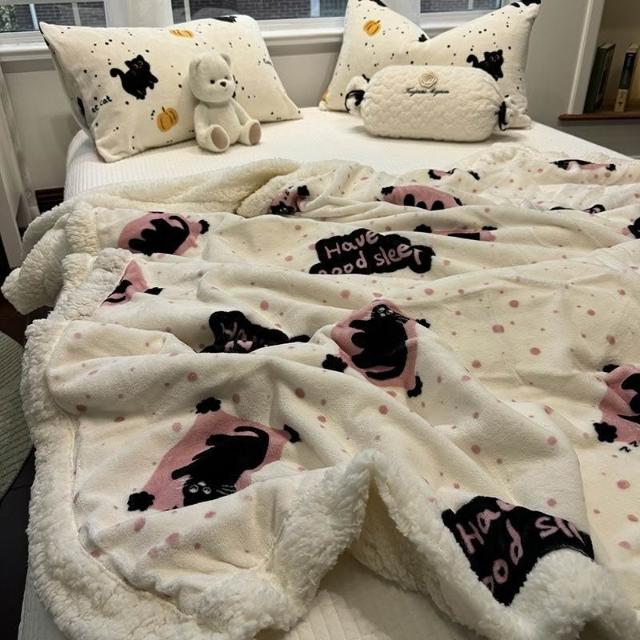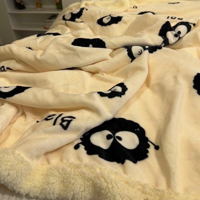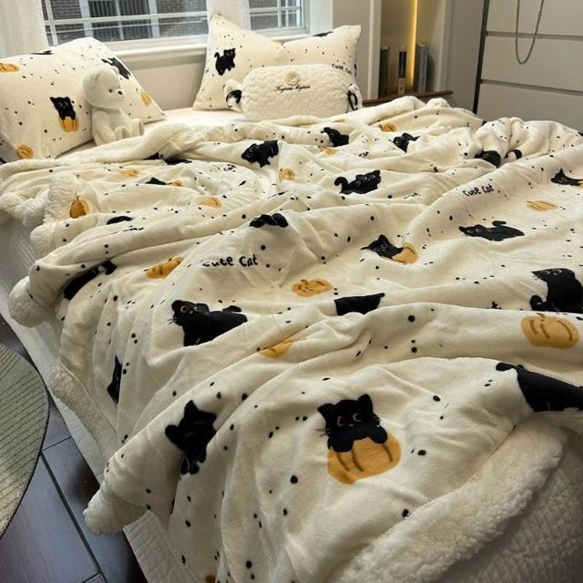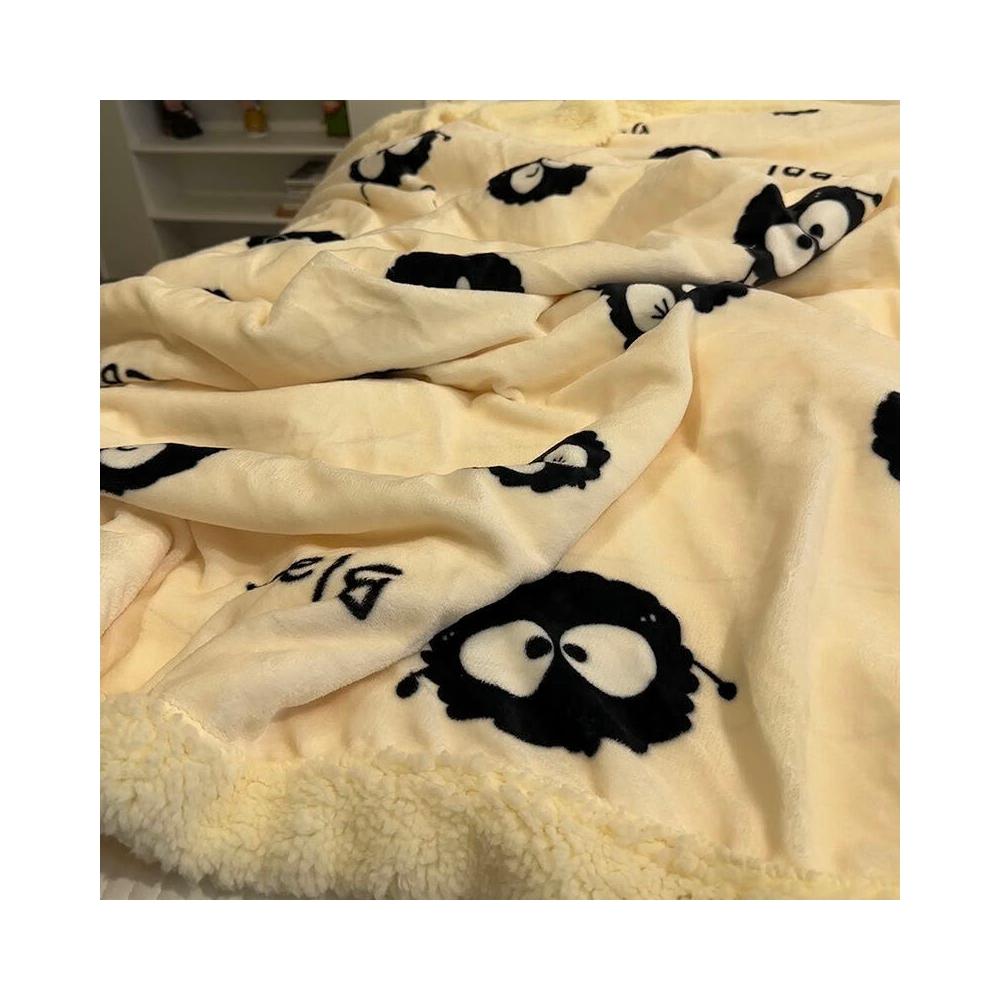 幕辭家居 正官旗可愛黑煤球加厚羊羔絨毛毯子清新蓋毯雙面保暖牛奶珊瑚絨毯 bad