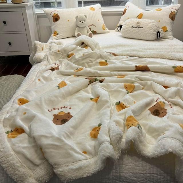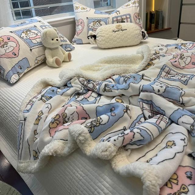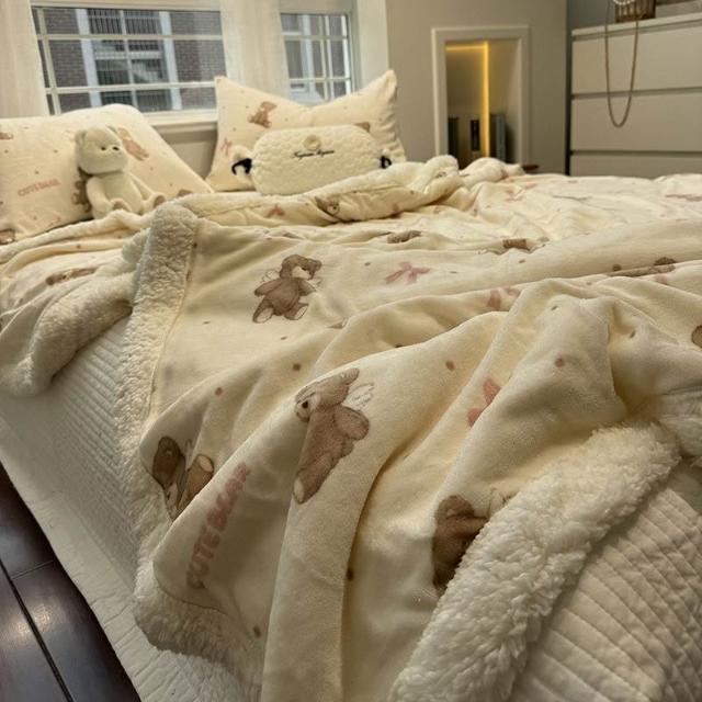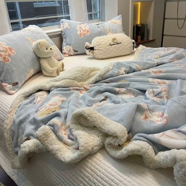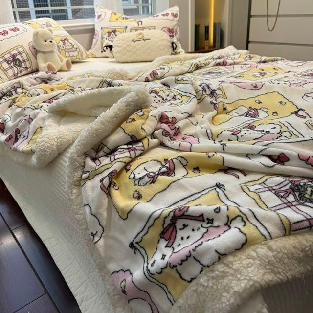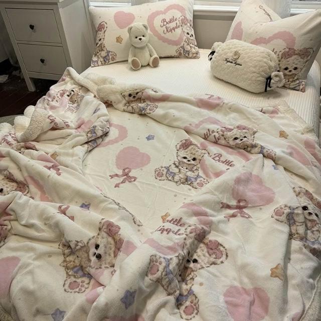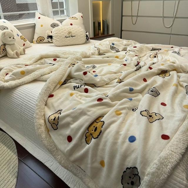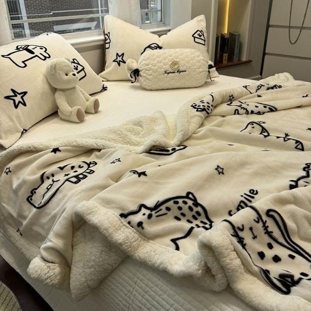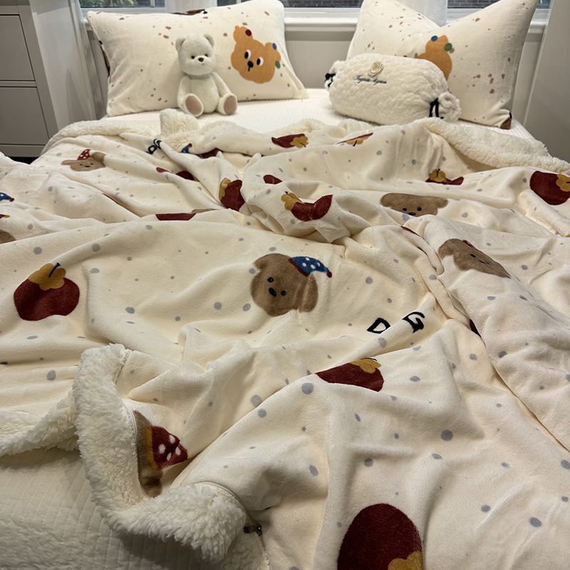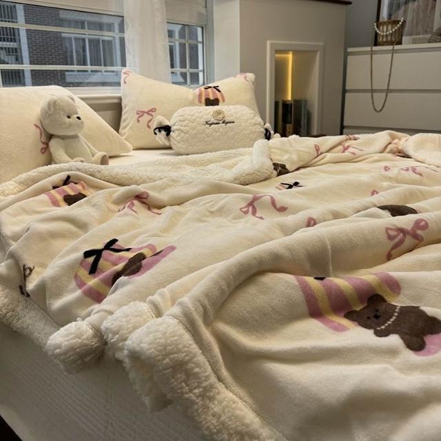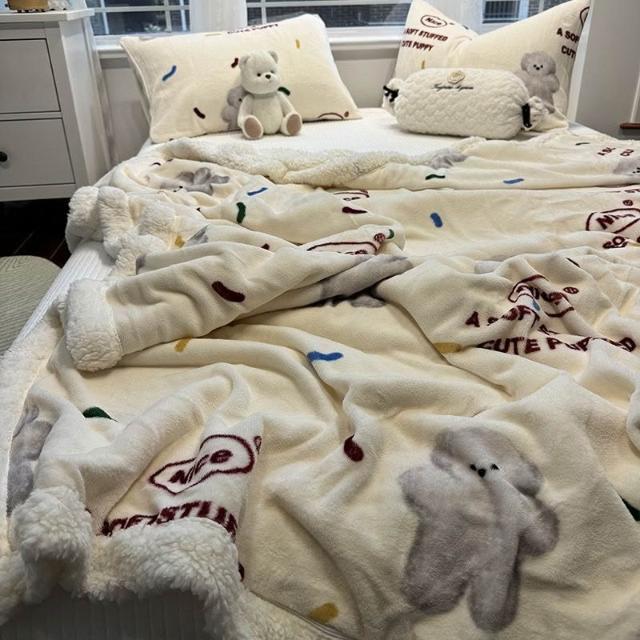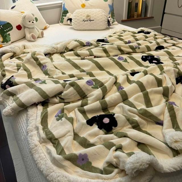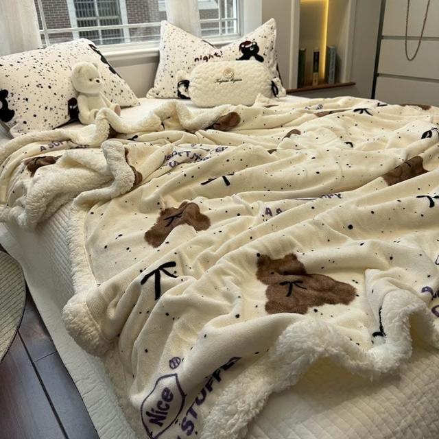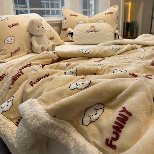 幕辭家居 正官旗可愛黑煤球加厚羊羔絨毛毯子清新蓋毯雙面保暖牛奶珊瑚絨毯 bad