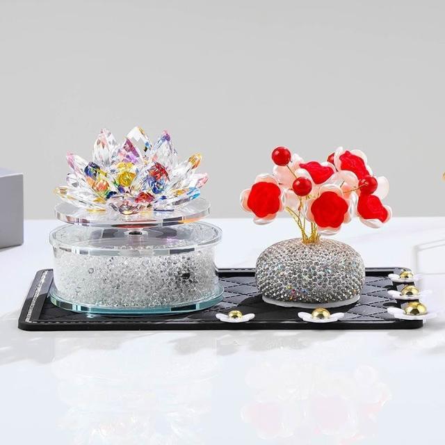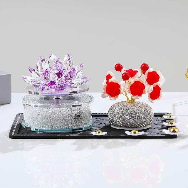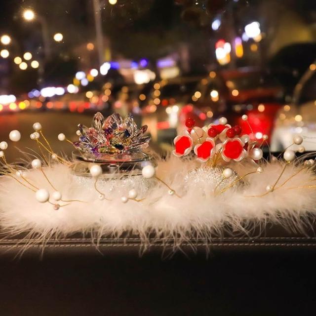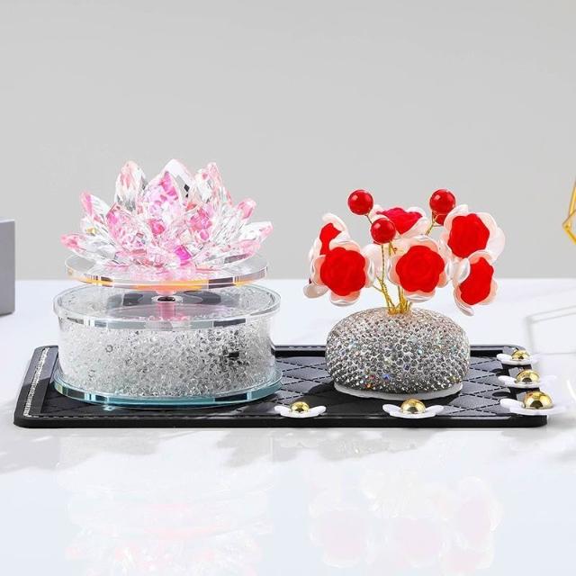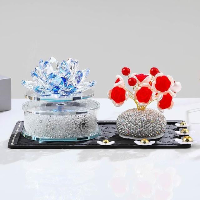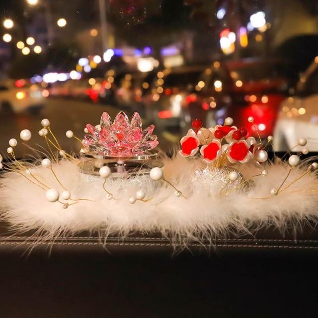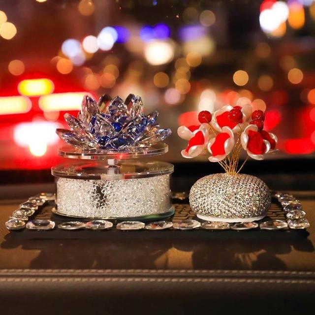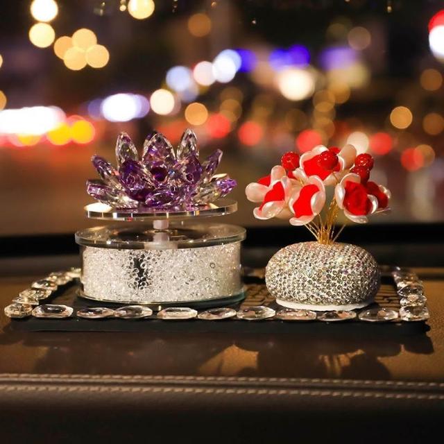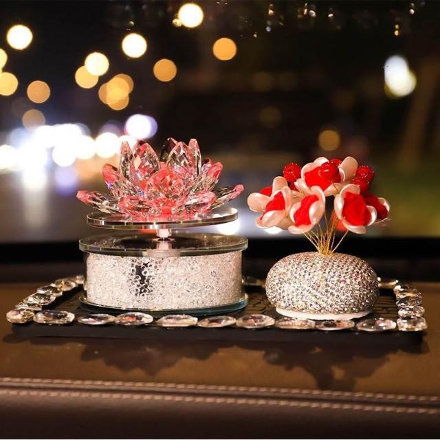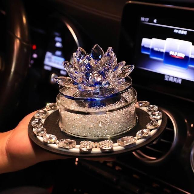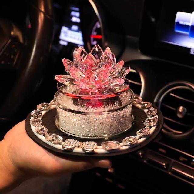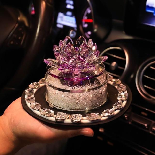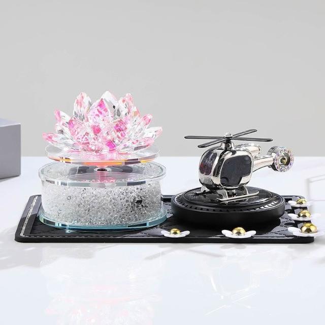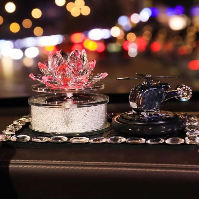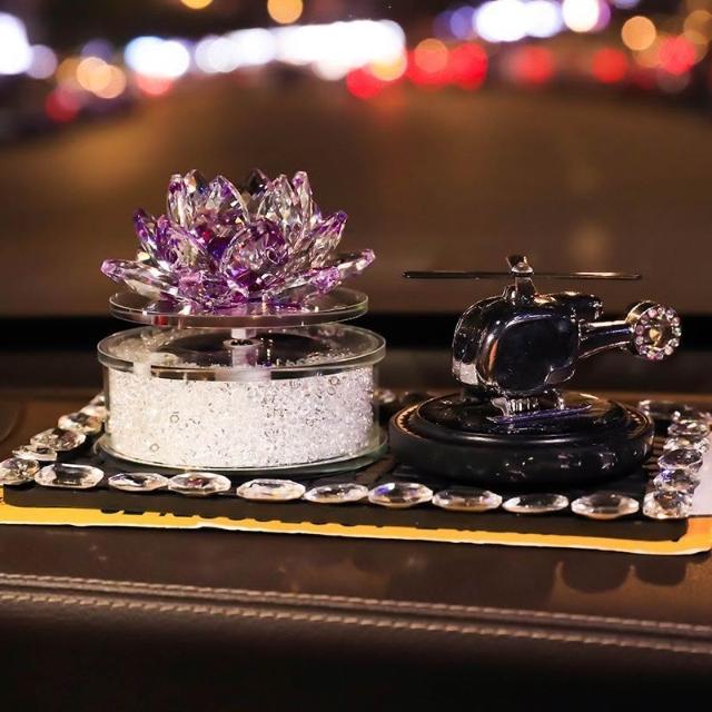幕辭家居 太陽能旋轉香氛 蓮花汽車車載 香水擺件 車內中控臺裝飾用品香薰小車 女生交換禮物