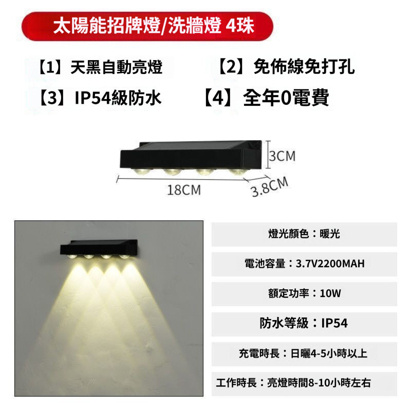 2026新款太陽能招牌燈 室外門牌燈 庭院洗墻燈 射燈 家用花園裝飾布置 太陽能燈 戶外燈 844