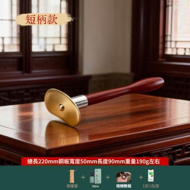 純黃銅太極刮痧板 長柄 一個人刮痧板 疏背部全身通用經絡刮痧板 通手握紅木刮痧板 a6e