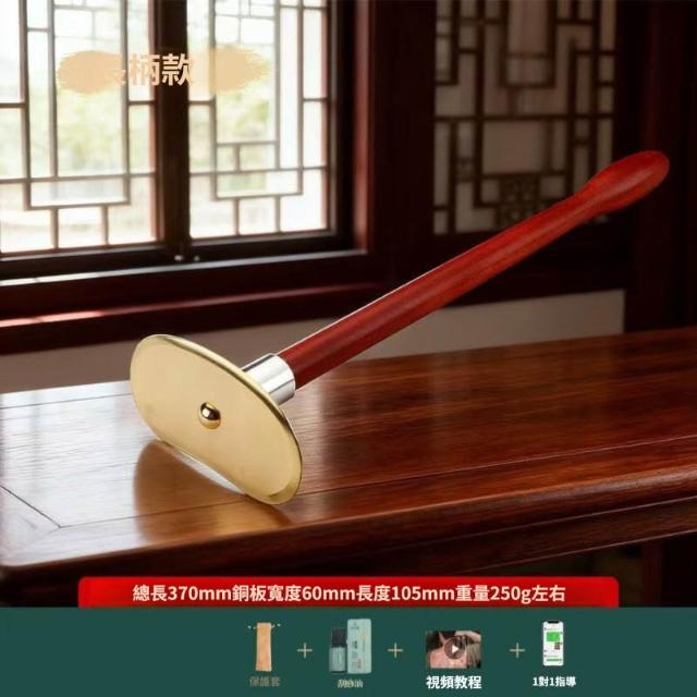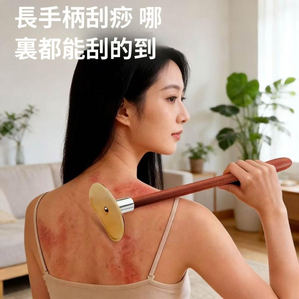 純黃銅太極刮痧板 長柄 一個人刮痧板 疏背部全身通用經絡刮痧板 通手握紅木刮痧板 a6e